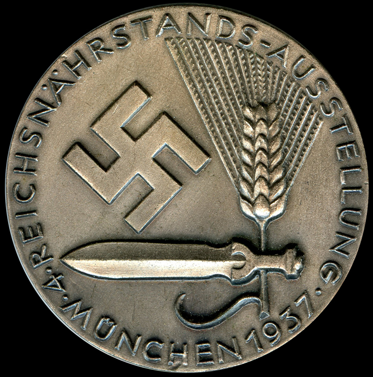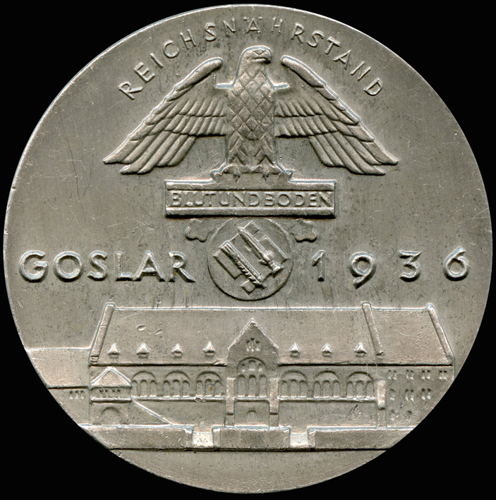 [Above: Blut und Boden medal (it was presented on a ribbon). It says: 'Landesbauernschaft Rheinland - Hauptabteilung II -