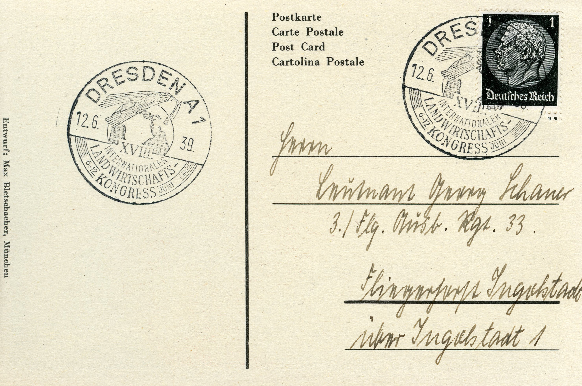 [Above: Postcard for the 1939 'Internationaler Landwirtschafts Kongress' (International Agricultural Congress). Click to enlarge.]