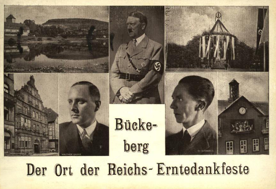 [Above: Postcard for the Deutsches Reichs Erntedankfest (a harvest/Thanksgiving festival) featuring the image of Reichsbauernführer Walther Darré.]