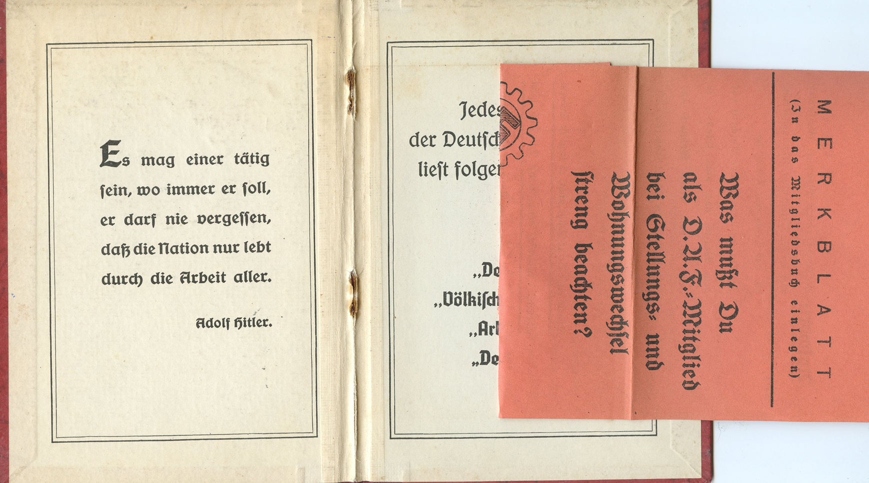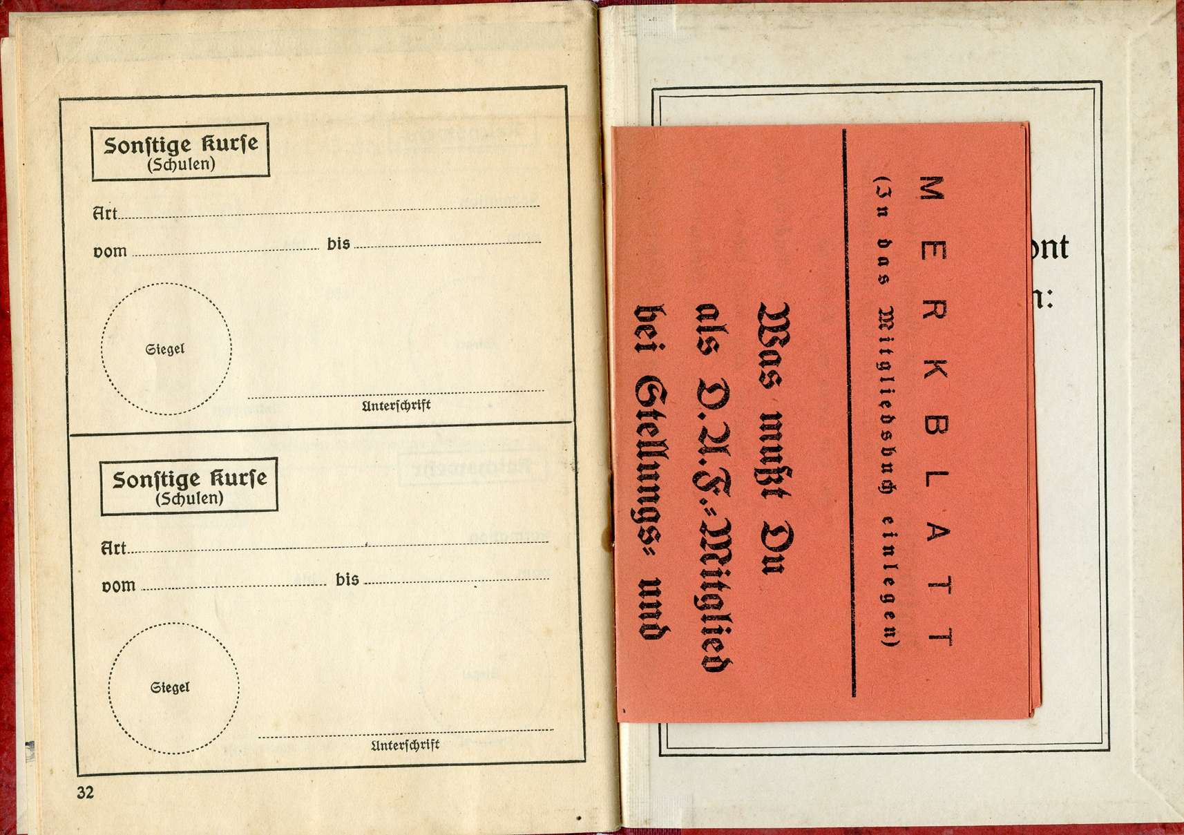 [Below: The 'merkblatt' (information sheet) unfolded.]