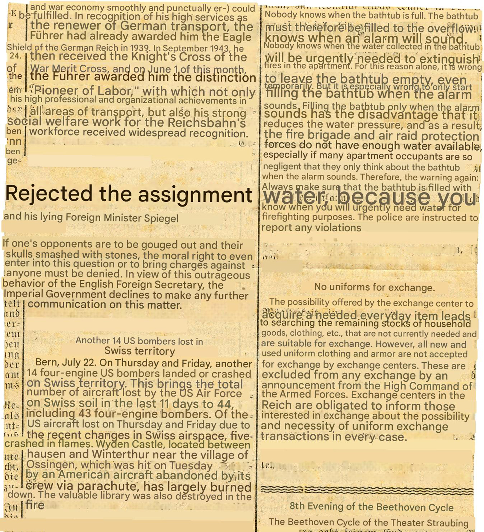 [Below: Reverse of newspaper clipping.]