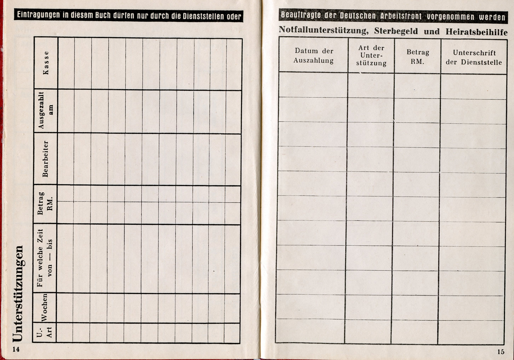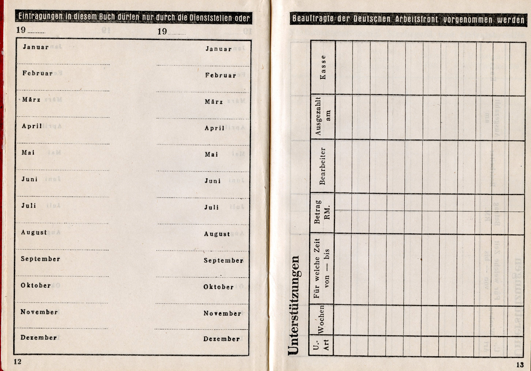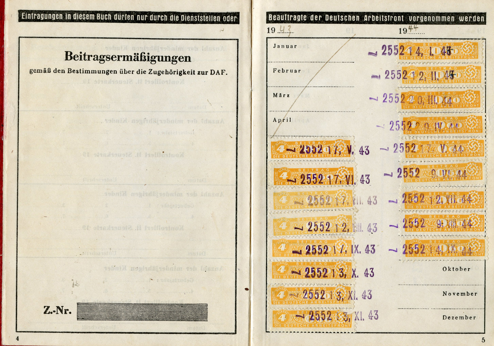 [Below: Note the gold DAF symbols is now a cheap grey. This was obviously due to the fact that this is from late in the war and a cost cutting measure. Or perhaps it once was gold and a cheap late-war ink was used and it peeled off and faded? You can see this on other late war books so it isn't just a few examples.]