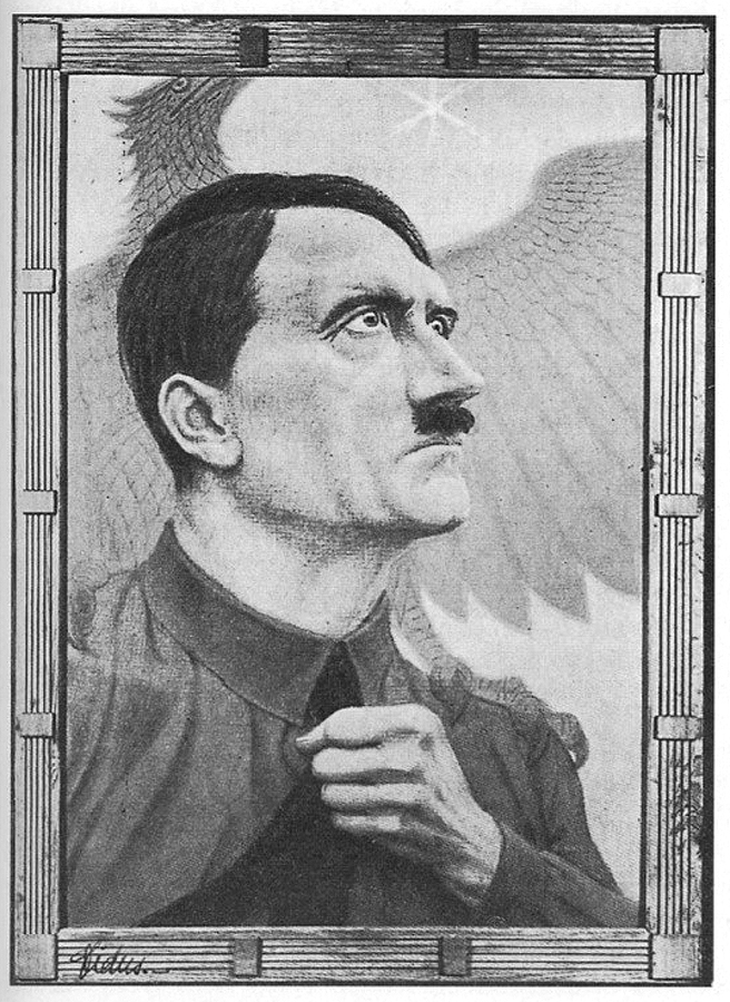 In 1932 he joined the NSDAP, unlike the majority of NSDAP members Fidus didn't wait for Adolf Hitler to become Chancellor. Fidus' work fit very well with the aesthetic of Blood and Soil and National Socialism in general. So it was a natural marriage of the two. It is rather hilariously claimed that Fidus made the image of Adolf Hitler [below] in a vain attempt to gain support of the Party, but the Führer hated it so much he banned it from sale! I guess whomever invented this tall tale never saw the hundreds of other Adolf Hitler art pieces which are far worse than this Fidus piece (not that it is bad). It is claimed that Fidus was banned by the NSDAP in 1937 for 'promotion of esotericism' and labeled 'degenerate art'. Walther Darré and Heinrich Himmler watch out! What a silly and pitiful statement.