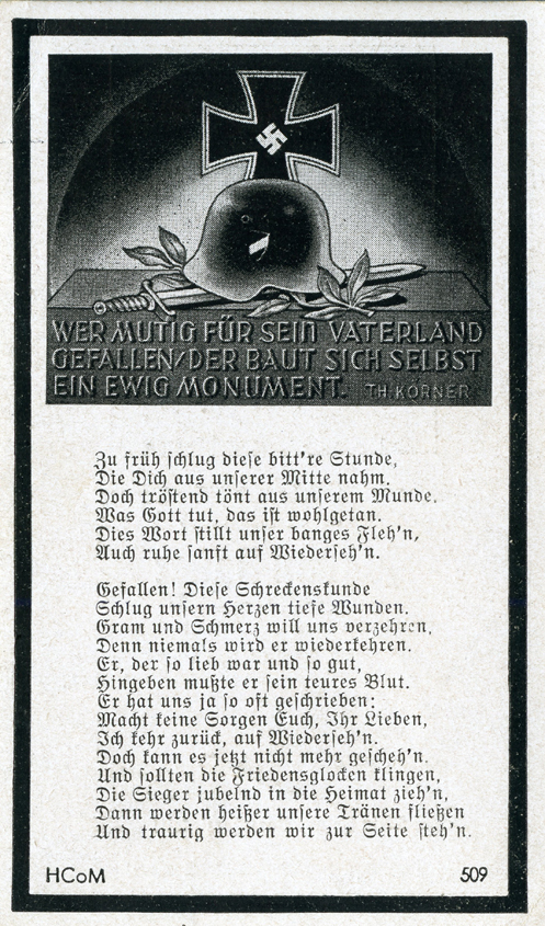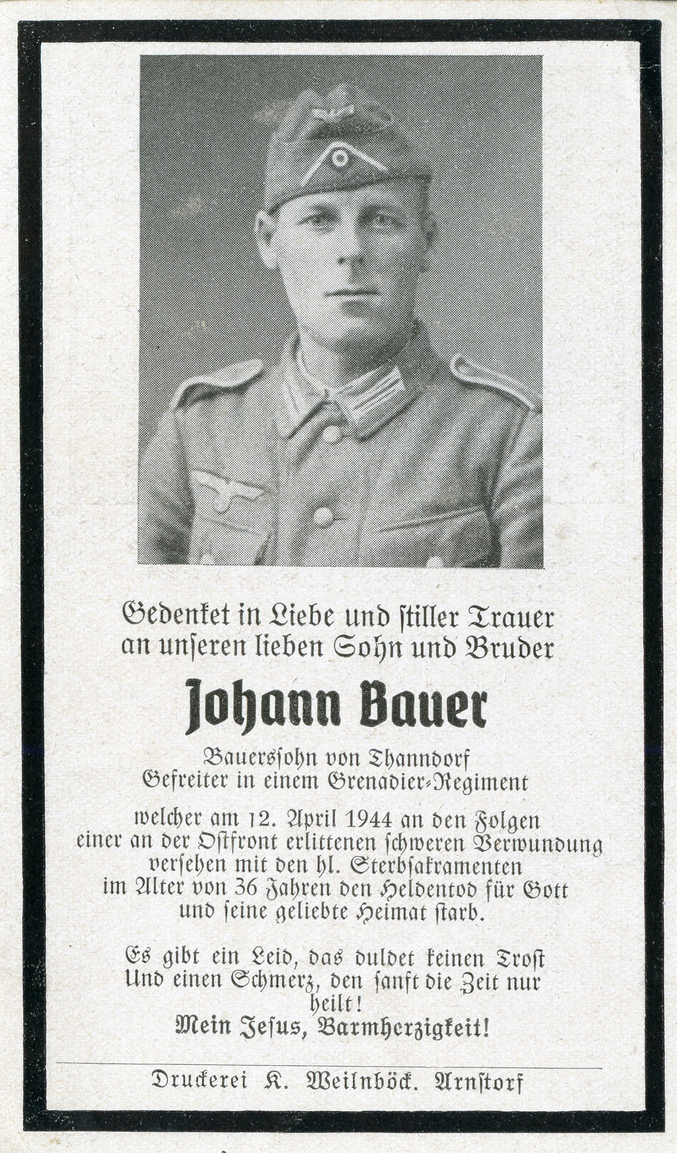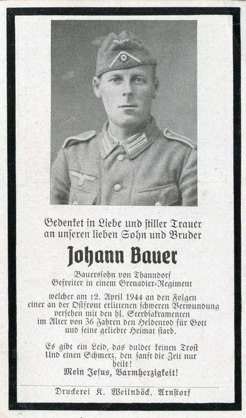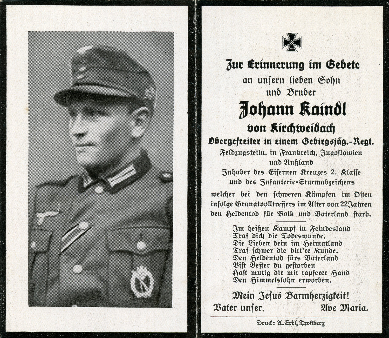 [Above: Johann Kaindl served in France, Yugoslavia and Russia, he earned the Iron Cross 2nd Class and the Infantry Assault Badge. He was only 22 years old.]