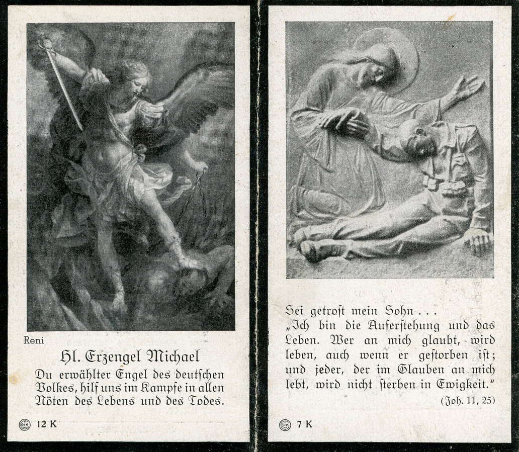 [Above: Another mourning card, this says: 'Er Starb, damit wir leben sollen' (He died so that we might live).]