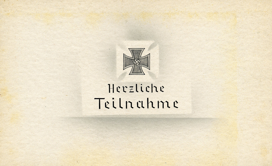 [Above: 'Herzliche Teilnahme' (Warm Sympathy). The black border of this postcard signifies mourning. It can be found on death cards and other material as well.]