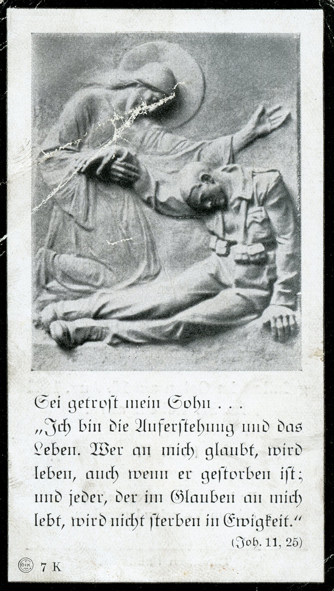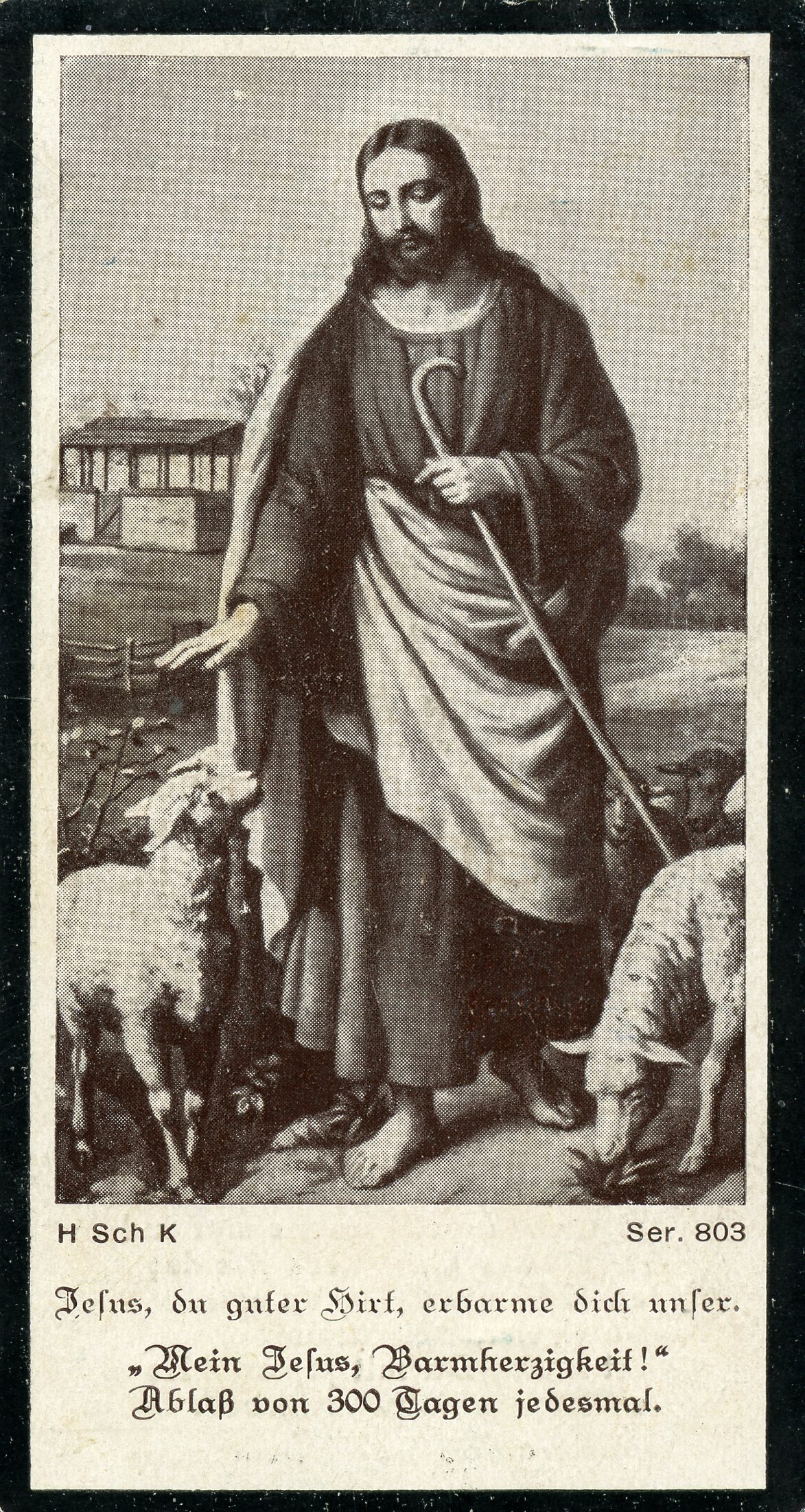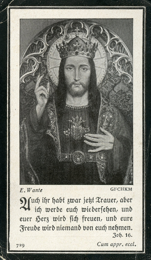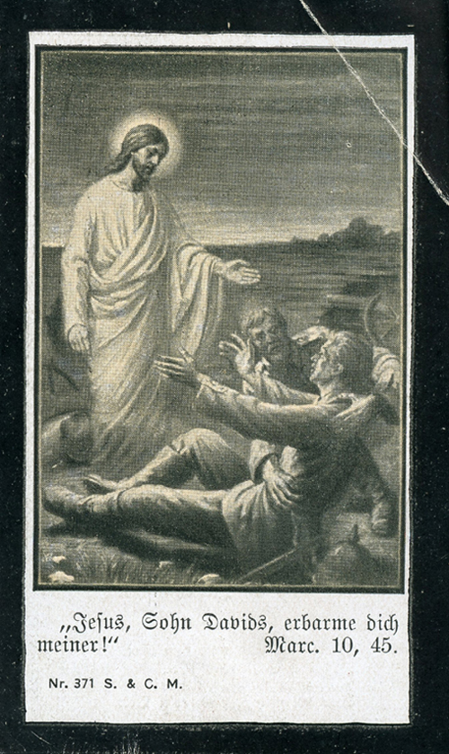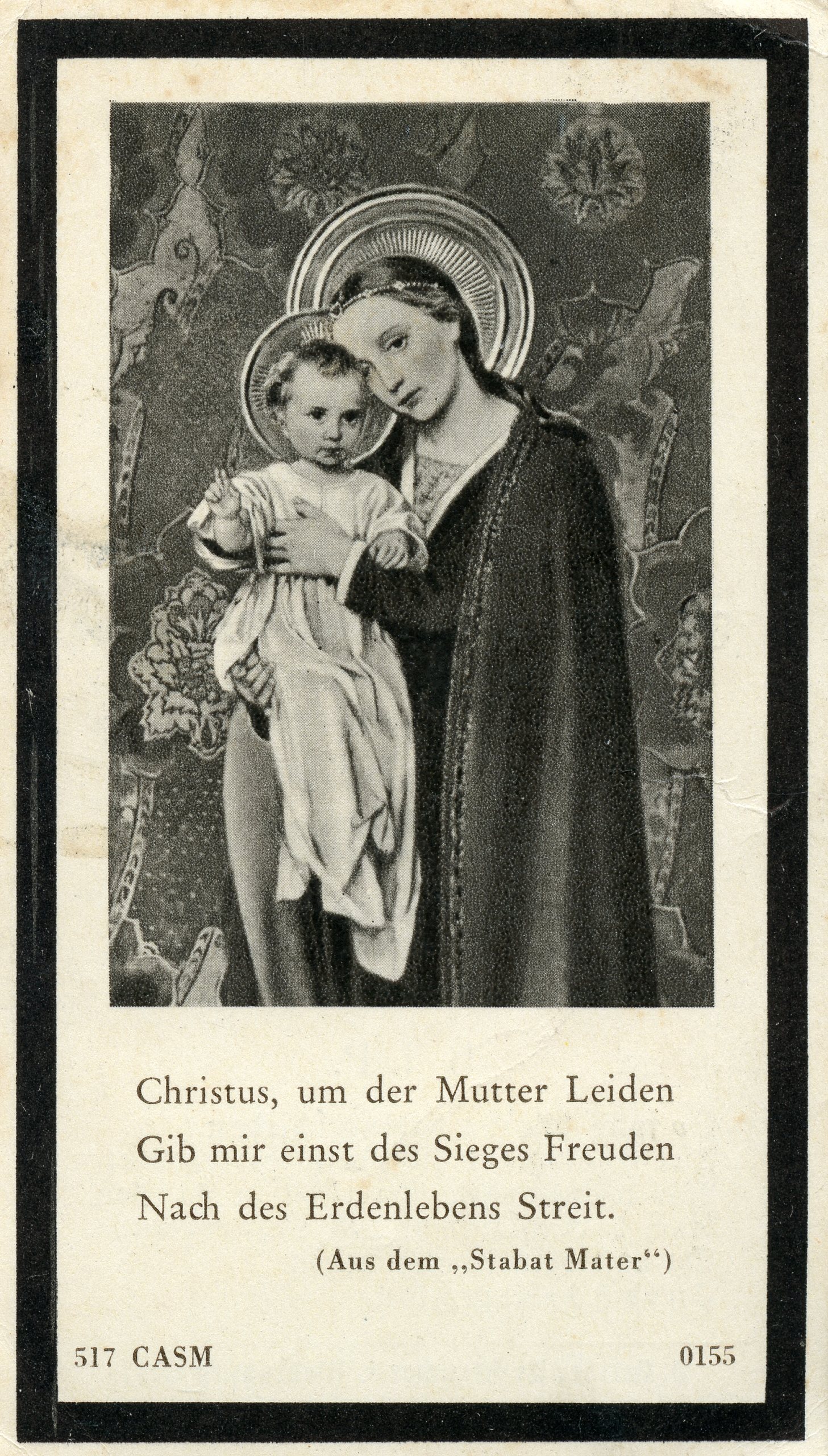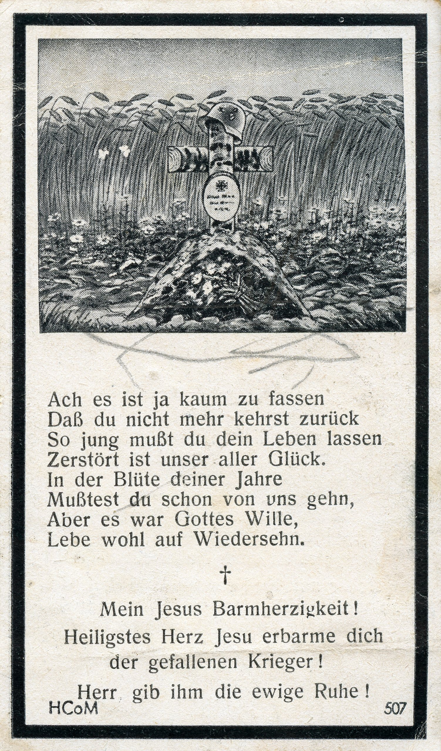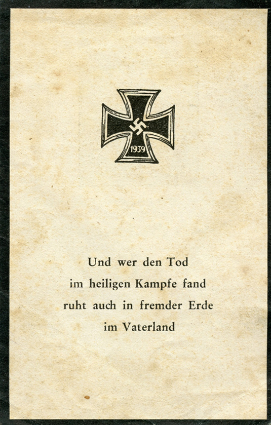 [Above: Another mourning card, this says: 'Er Starb, damit wir leben sollen' (He died so that we might live).]