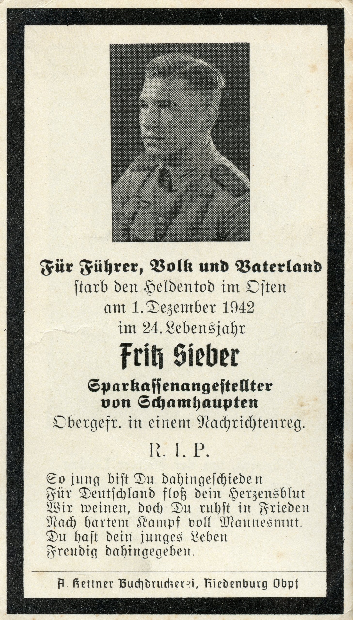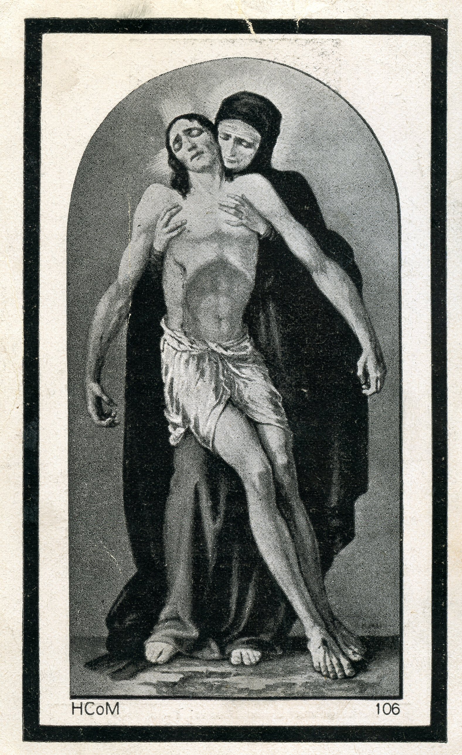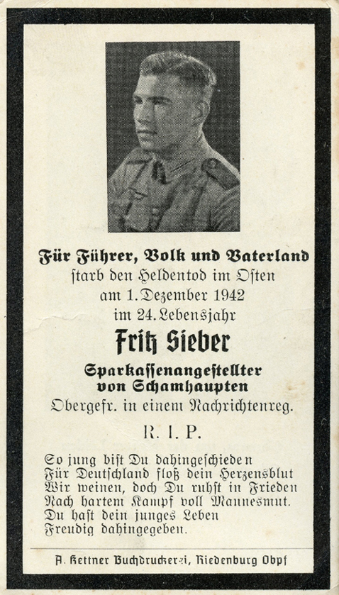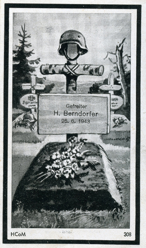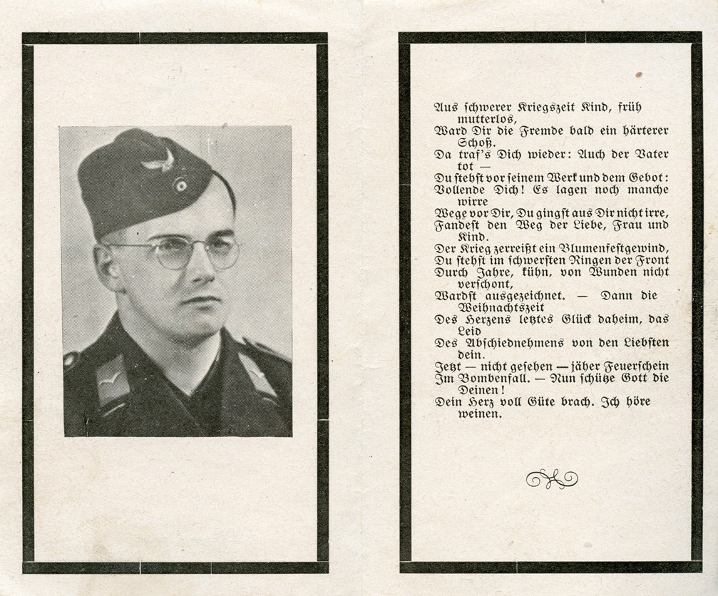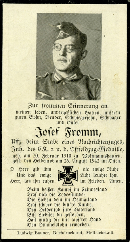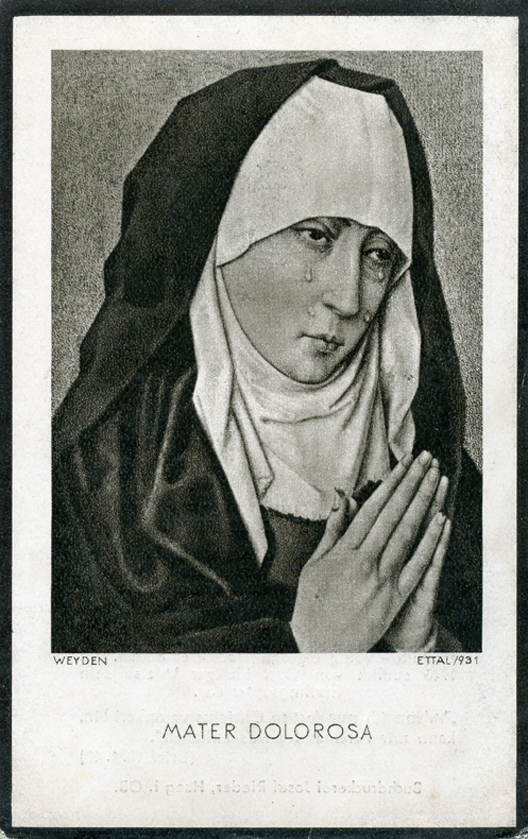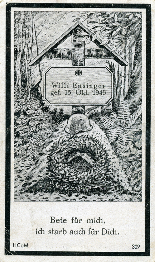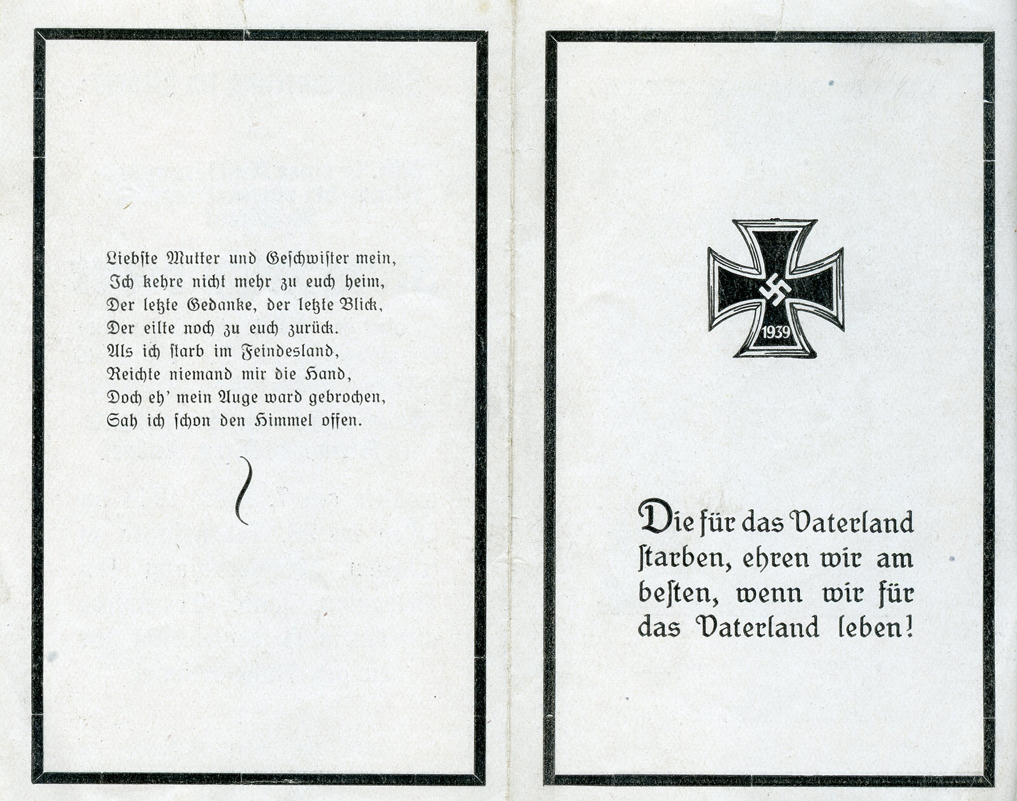[Above: Another mourning card, this says: 'Er Starb, damit wir leben sollen' (He died so that we might live).]