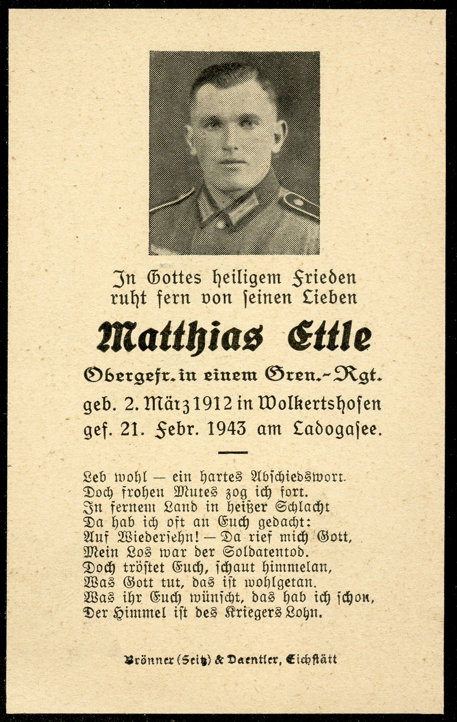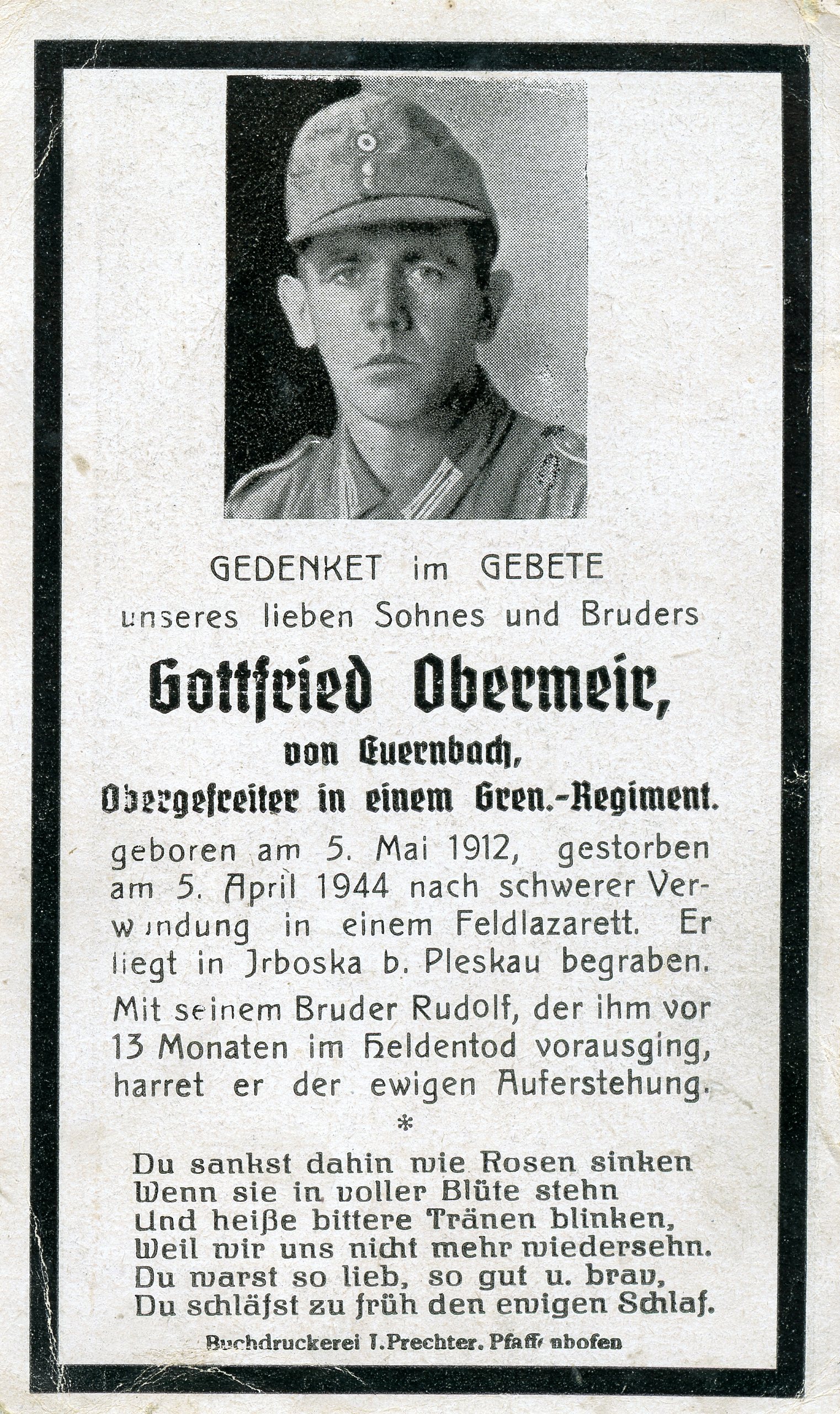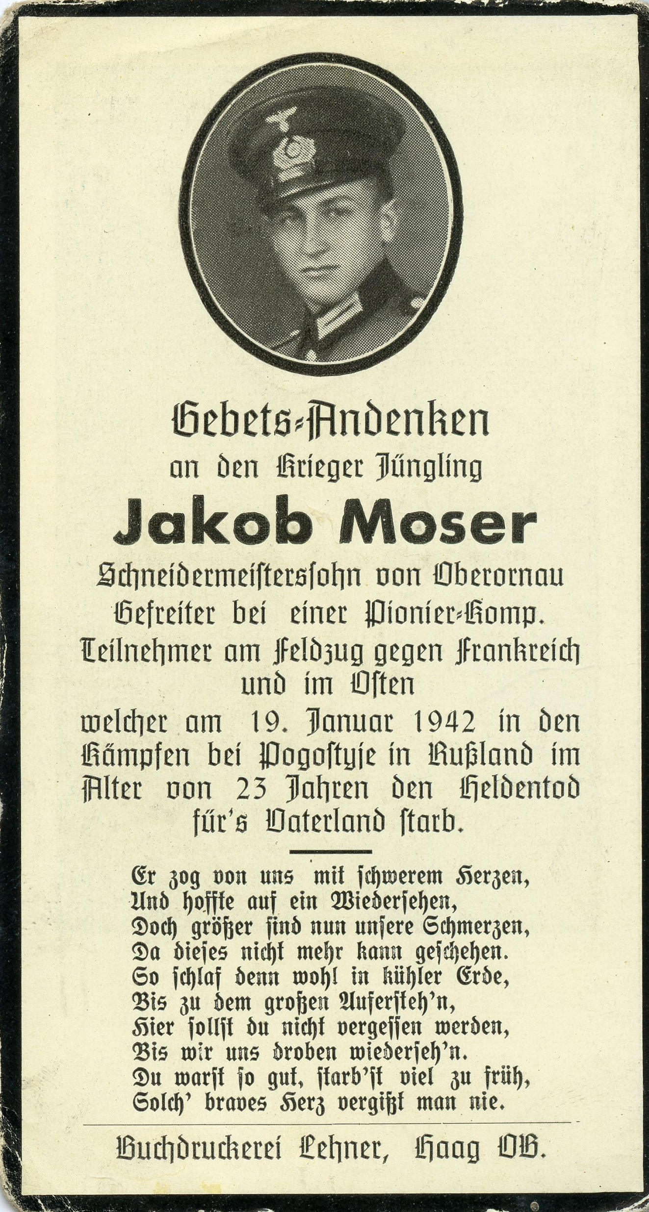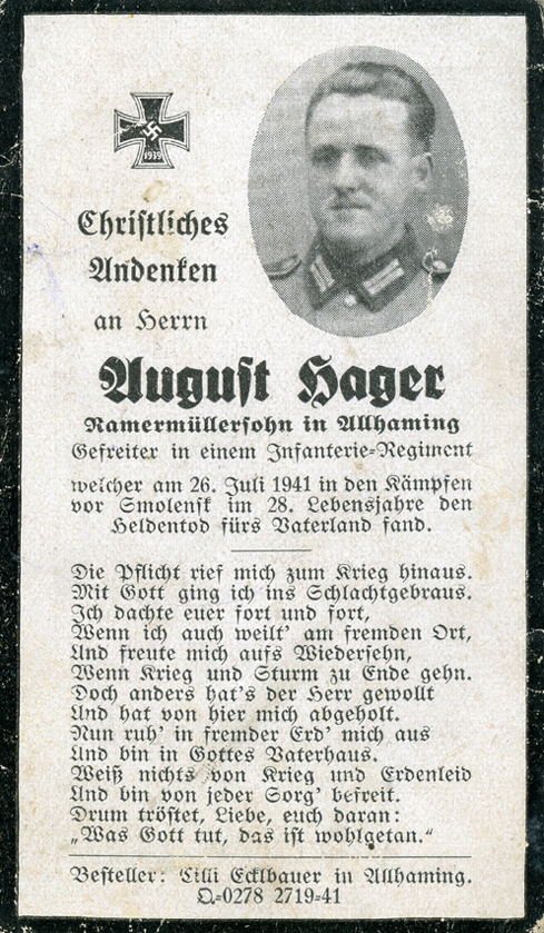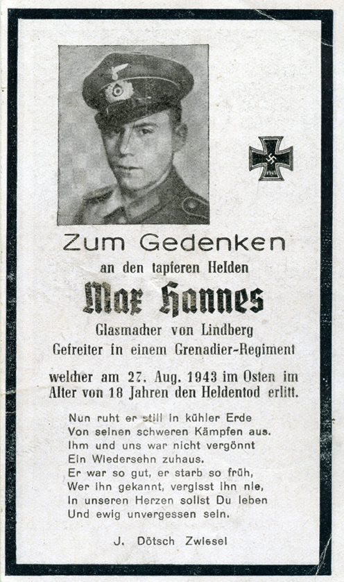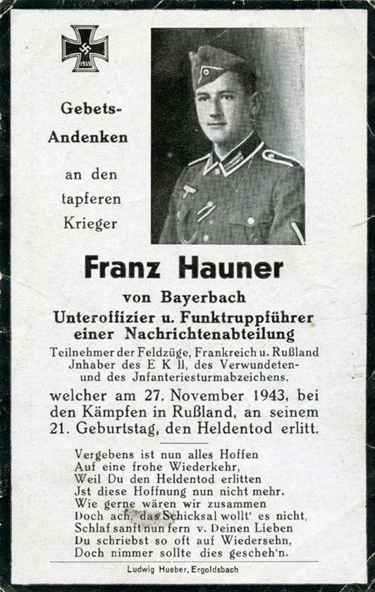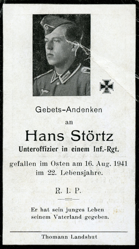 [Above: Another mourning card, this says: 'Er Starb, damit wir leben sollen' (He died so that we might live).]