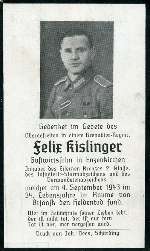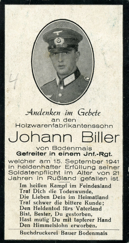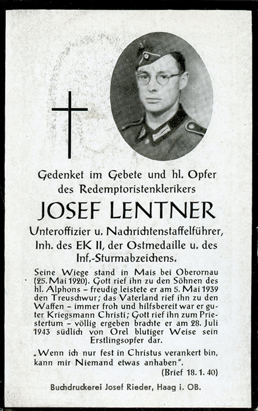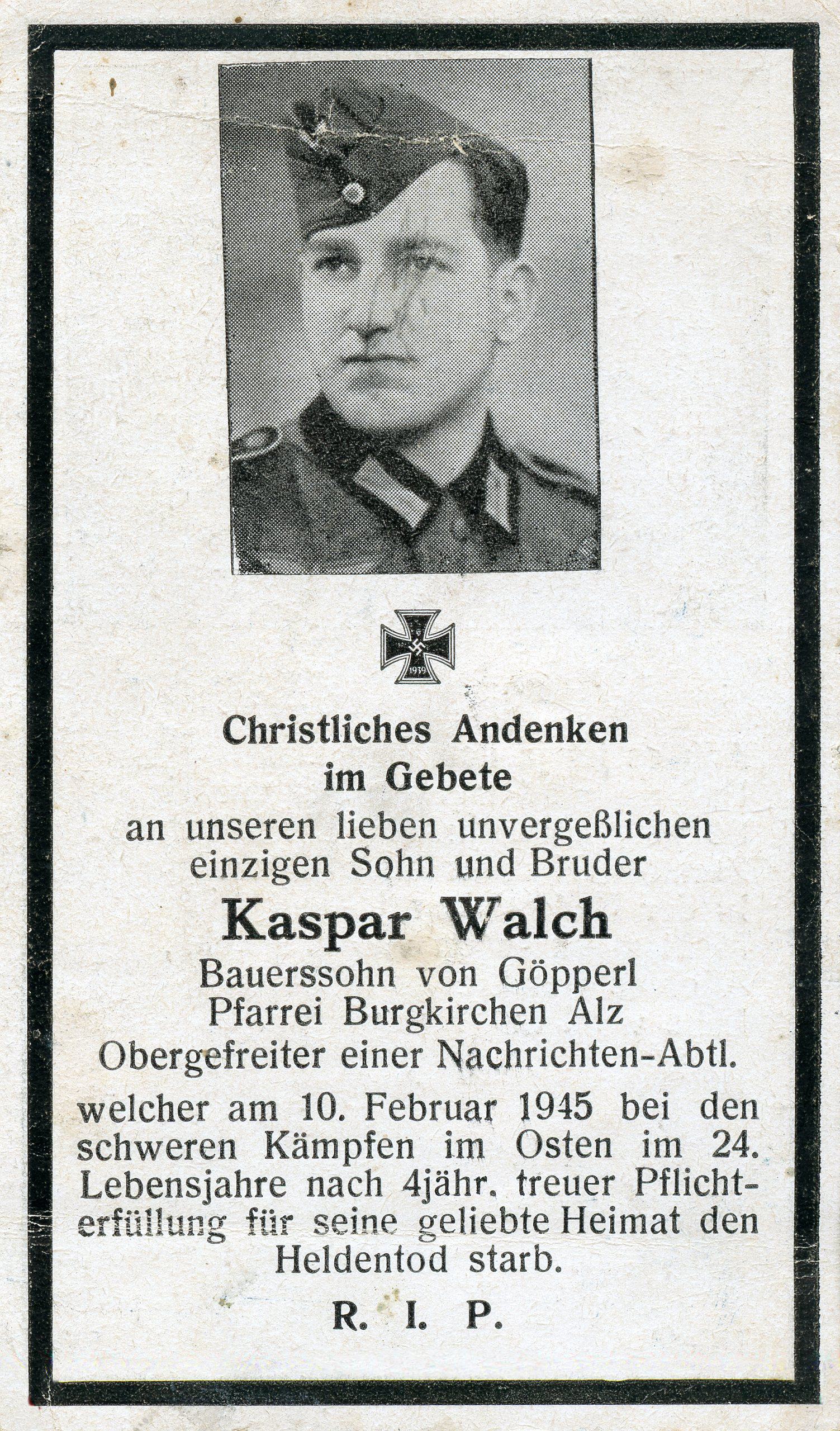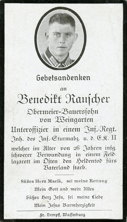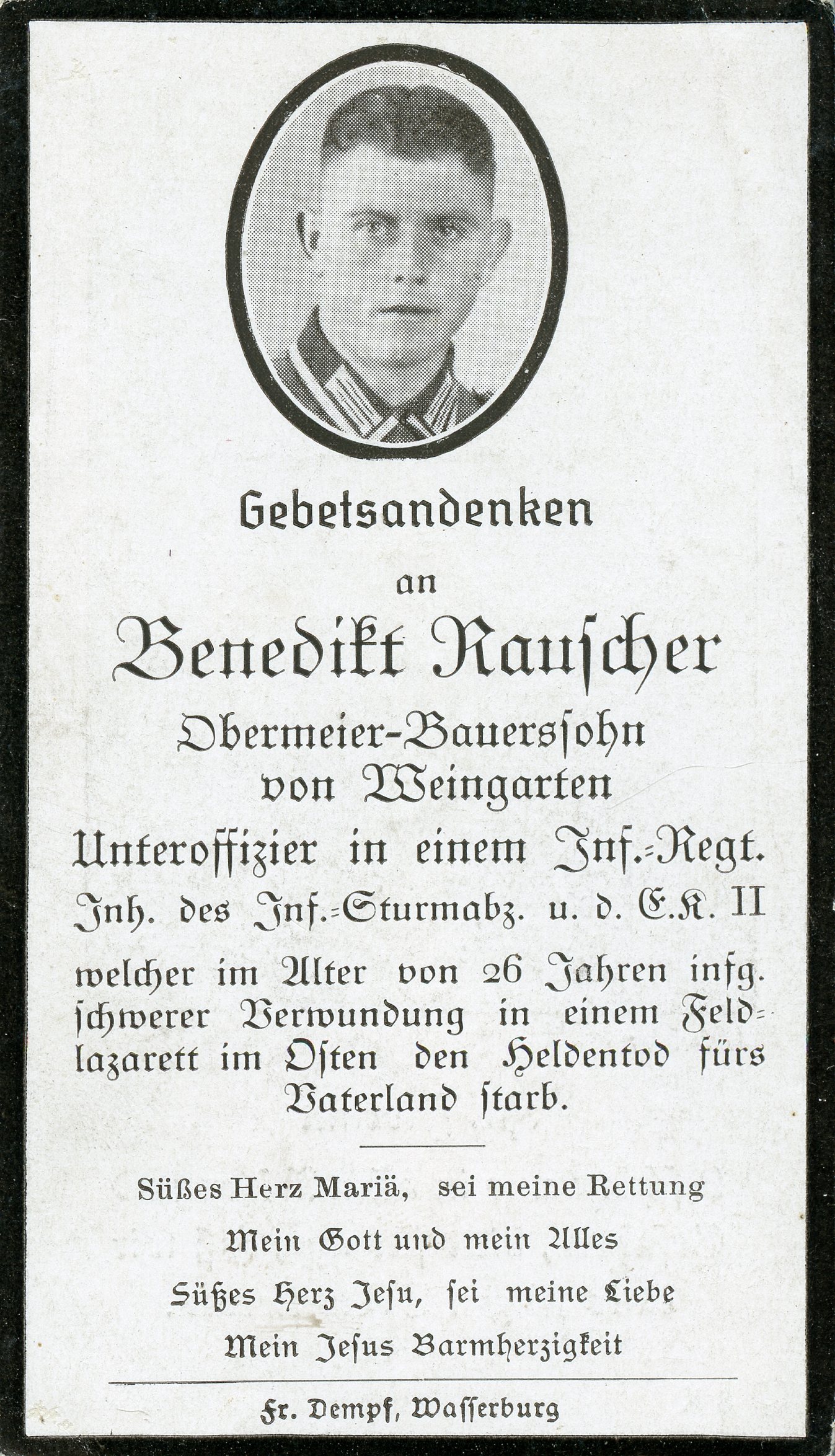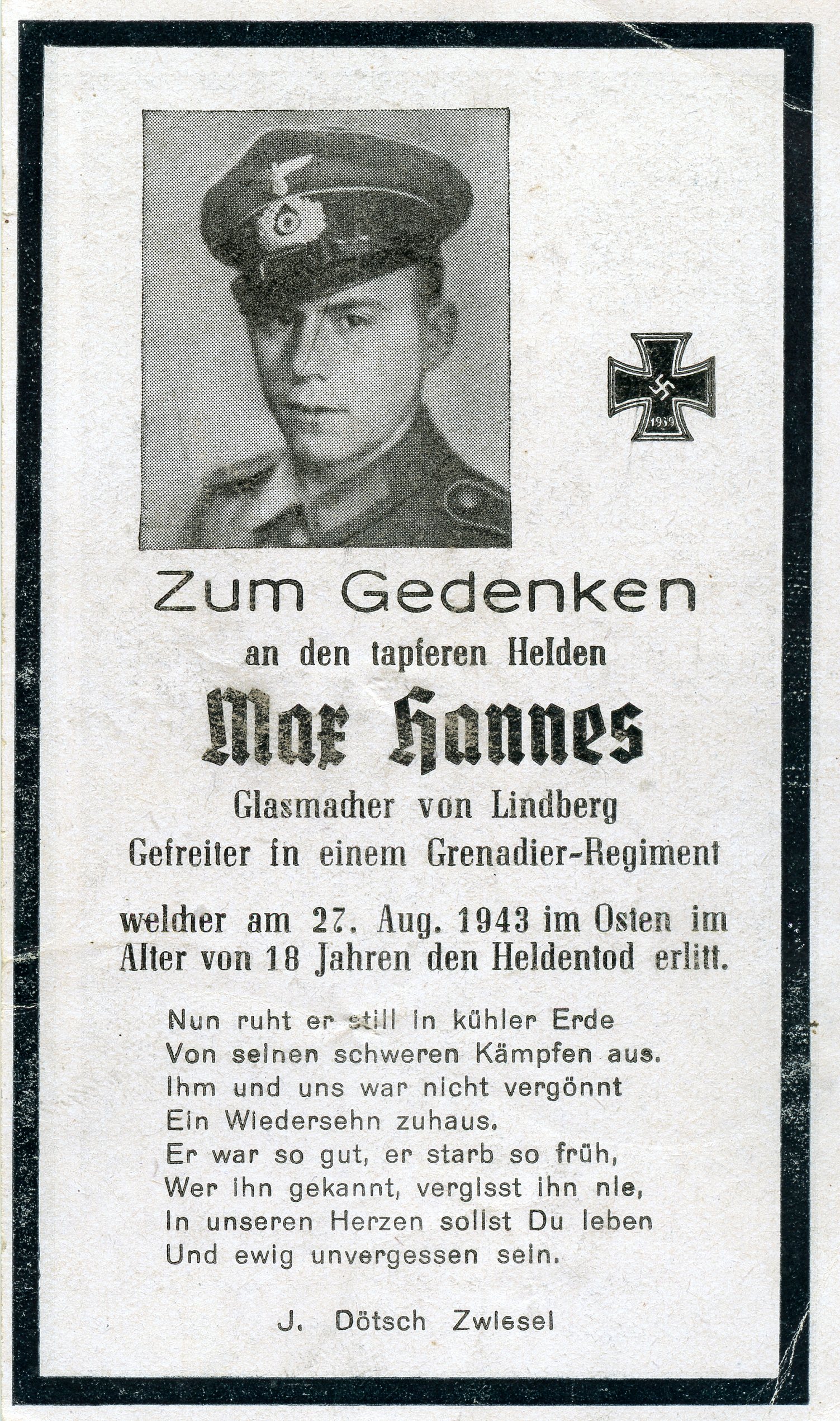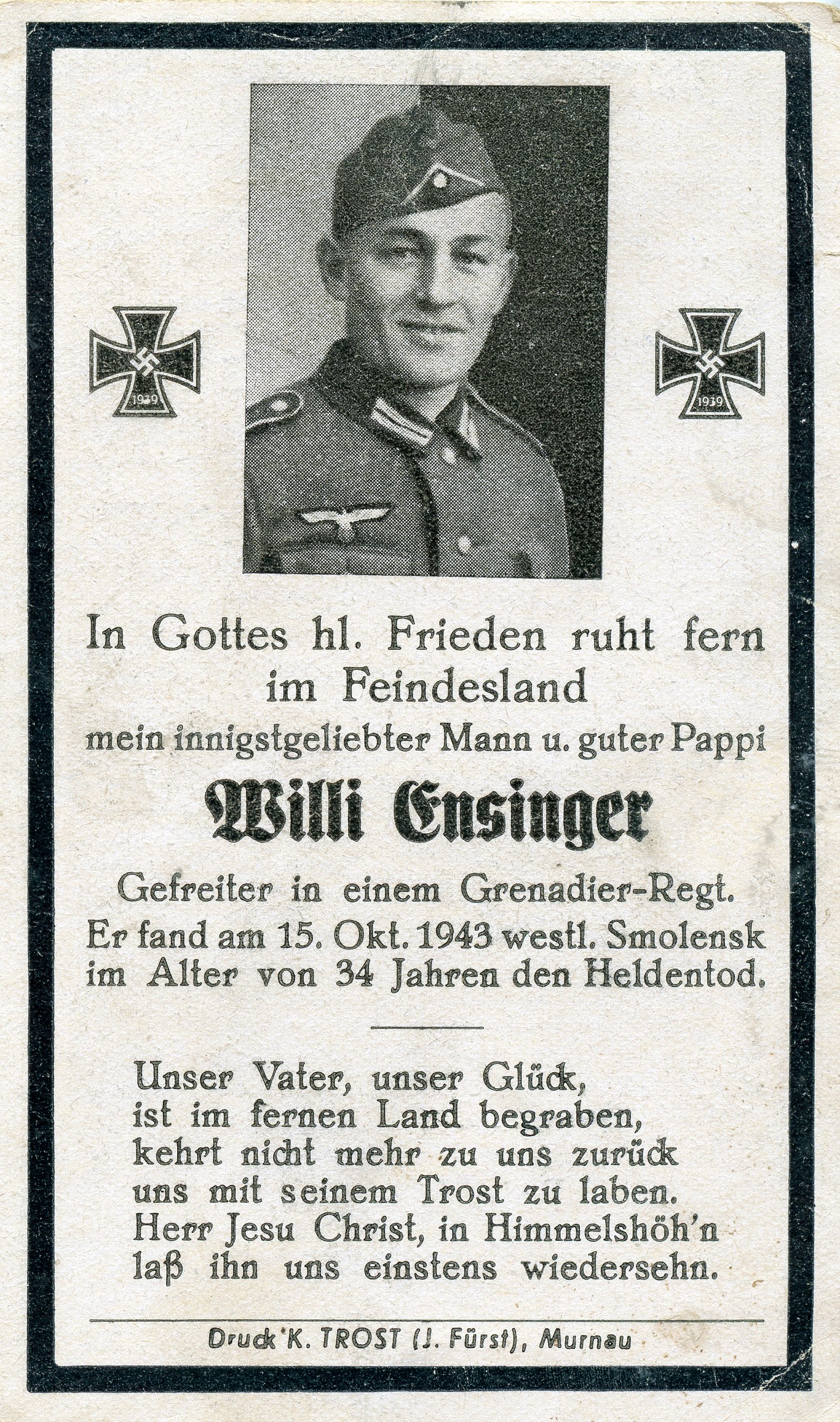 [Above: Another mourning card, this says: 'Er Starb, damit wir leben sollen' (He died so that we might live).]