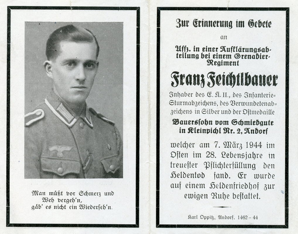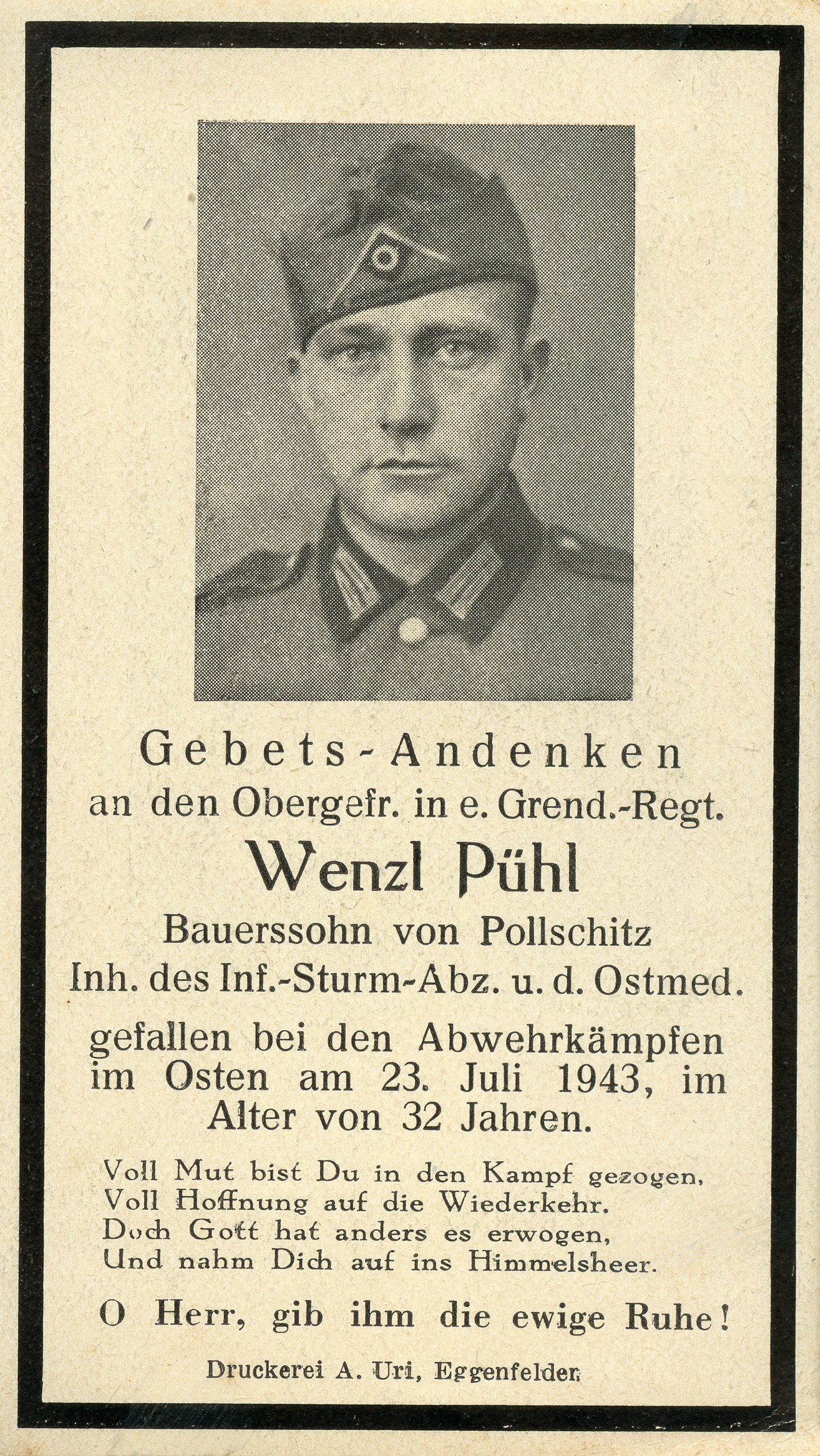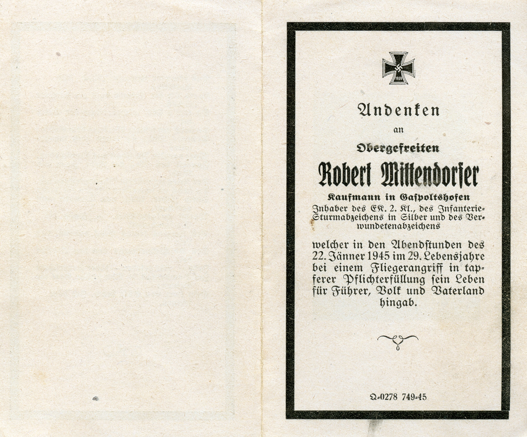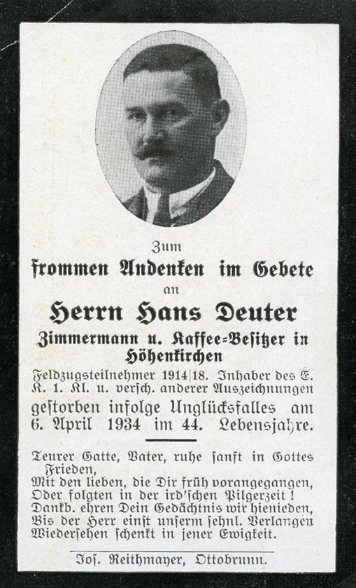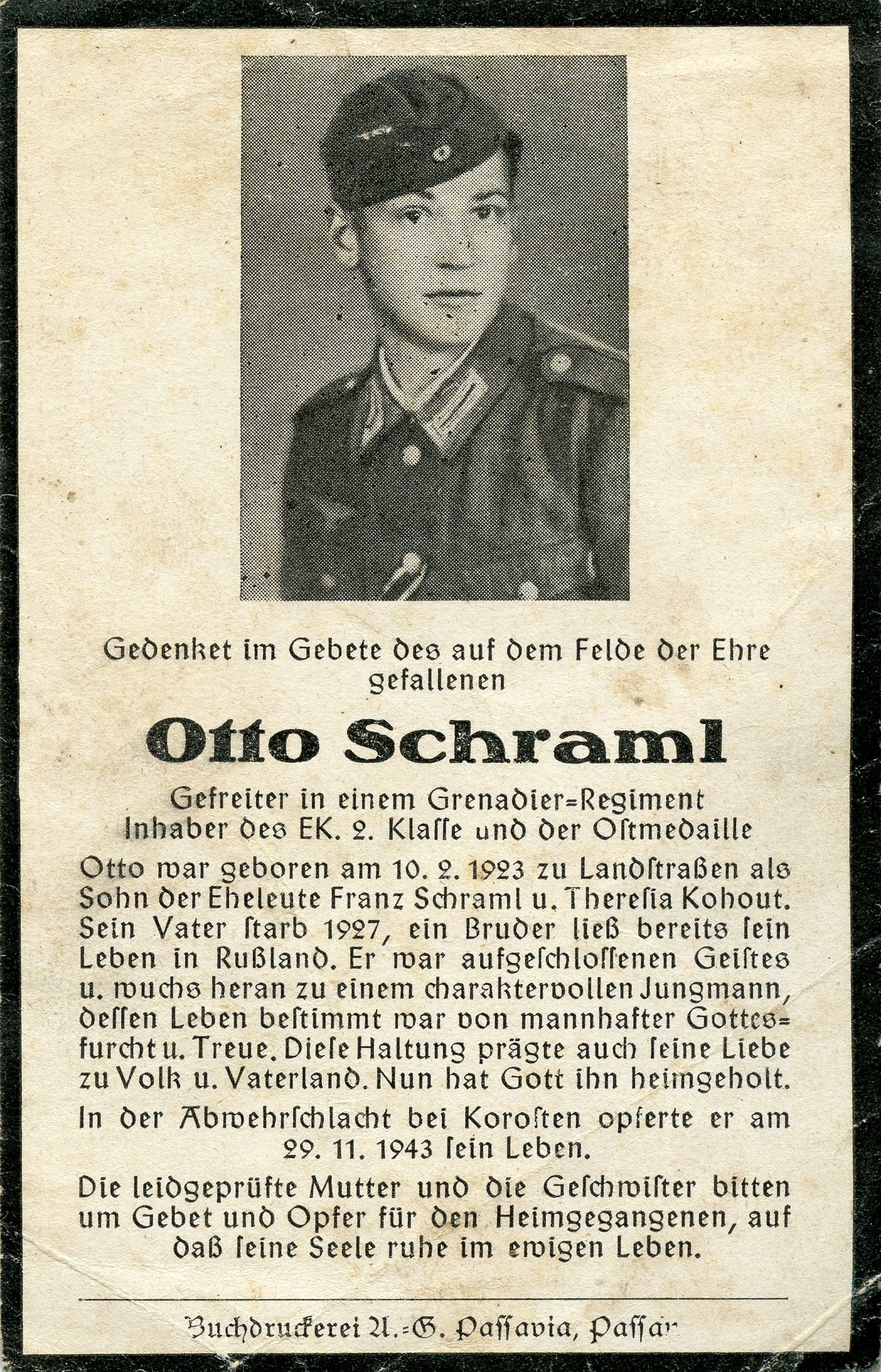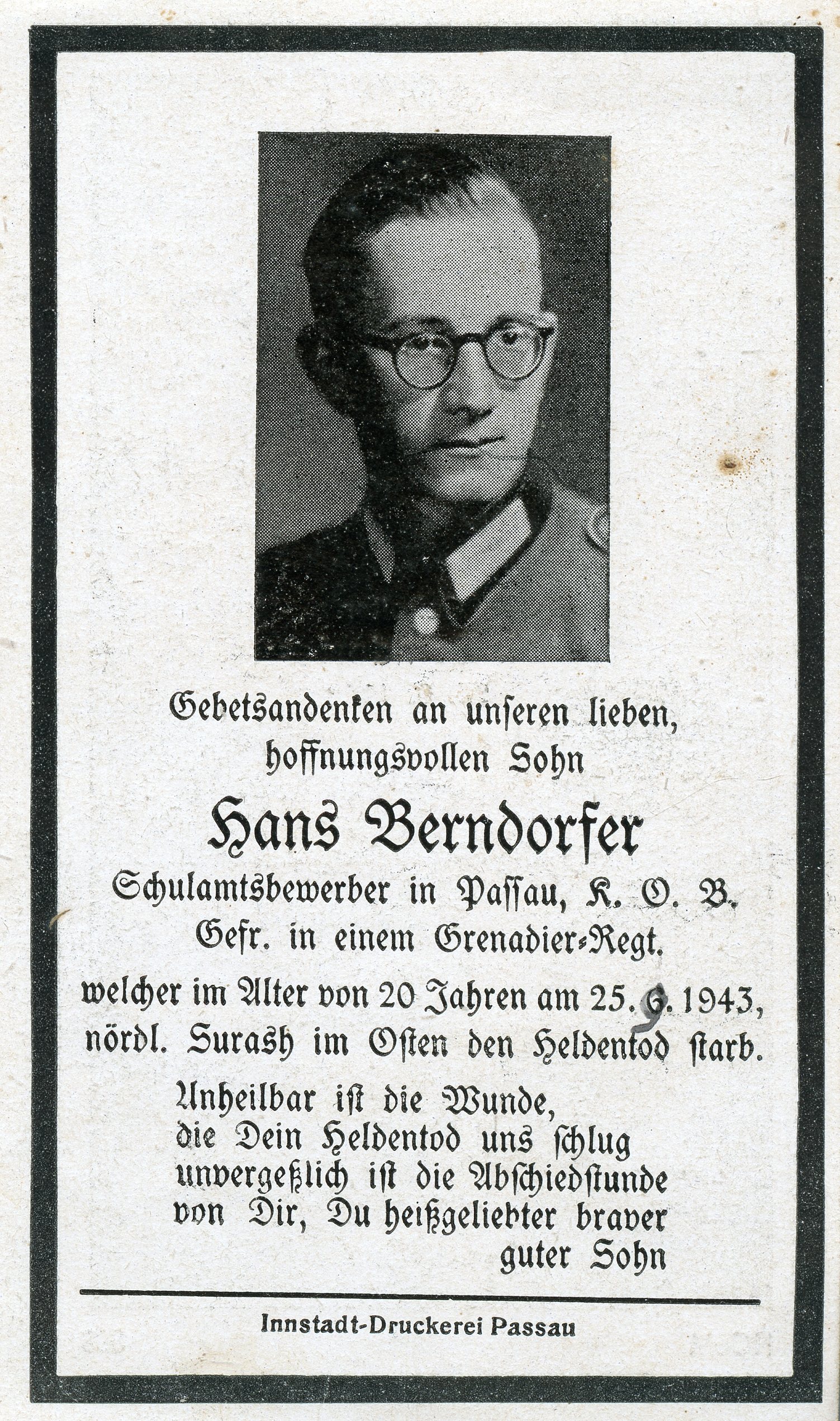 [Above: Another mourning card, this says: 'Er Starb, damit wir leben sollen' (He died so that we might live).]