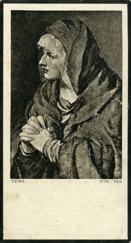 [Above: 'Herzliche Teilnahme' (Warm Sympathy). The black border of this postcard signifies mourning. It can be found on death cards and other material as well.]