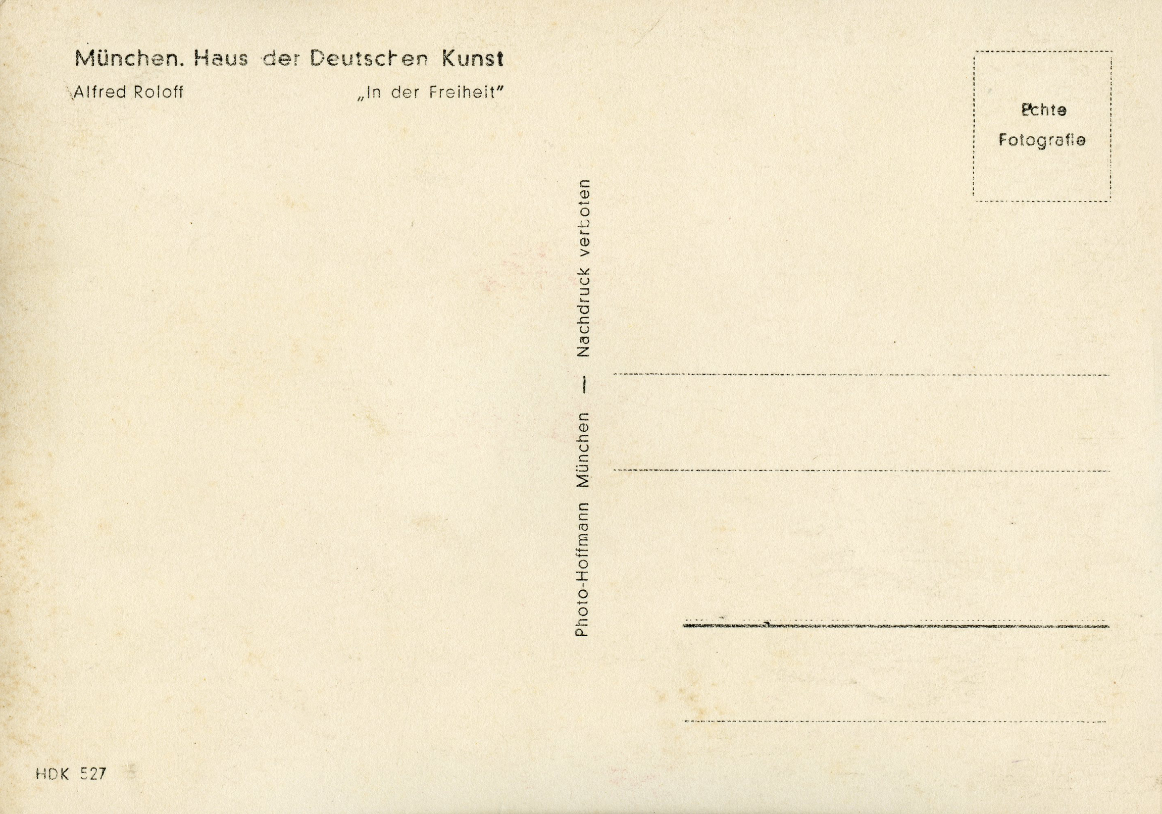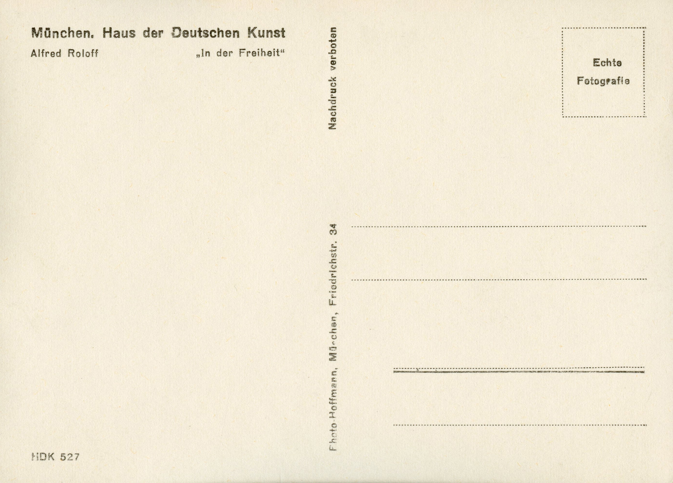 [Below: Postcard variation - minus part of the Hoffmann address. Front.]