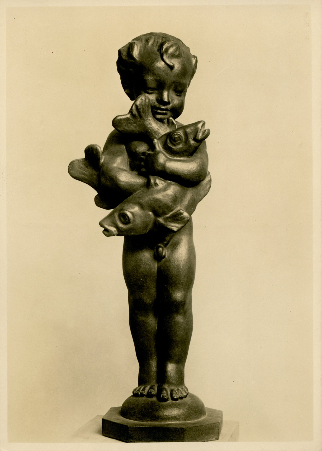 [Above: This was done by the artist Willy Seidel, from Pforzheim, entitled 'Brunnenfigur "Kind mit 2 Fischen"' (Fountain figure "Child with 2 Fish").]