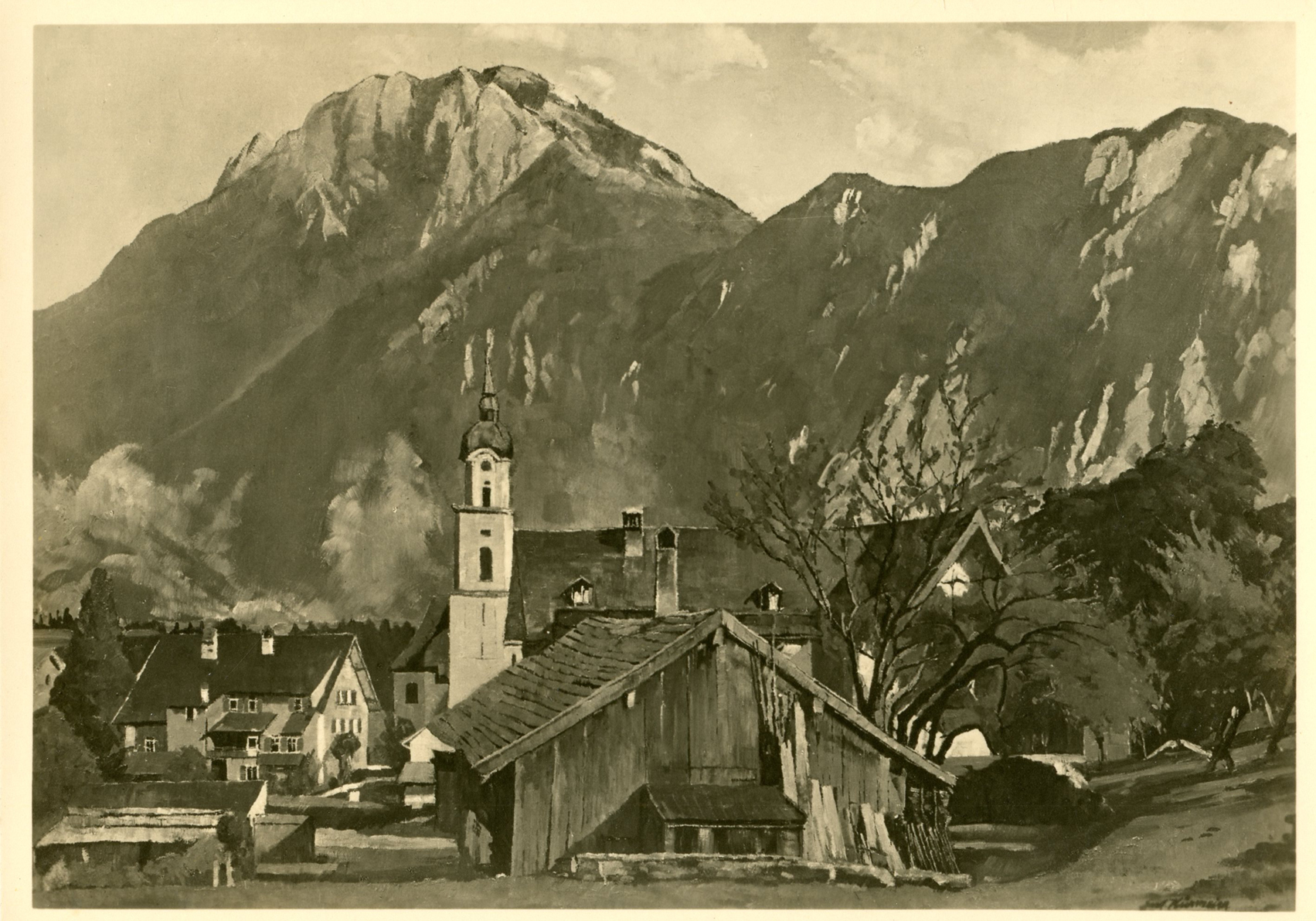 [Above: This was done by the artist Oskar Mulley, from Garmisch, entitled 'Kleinbauerngehöft' (Small Farmstead).]