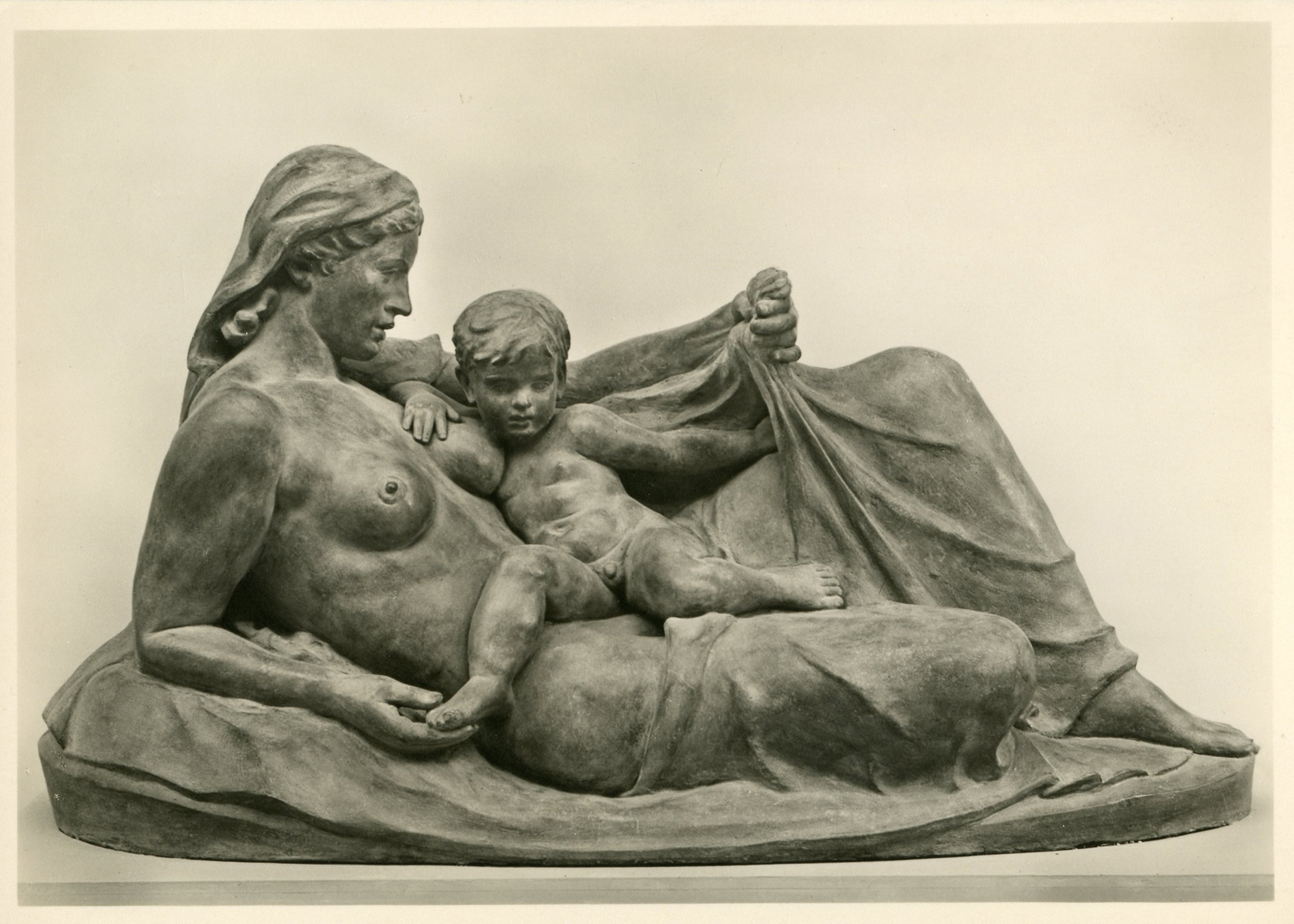 [Above: This was done by the artist Josef Thorak, from Baldham, entitled 'Mutter mit Kind' (Mother with Child).]