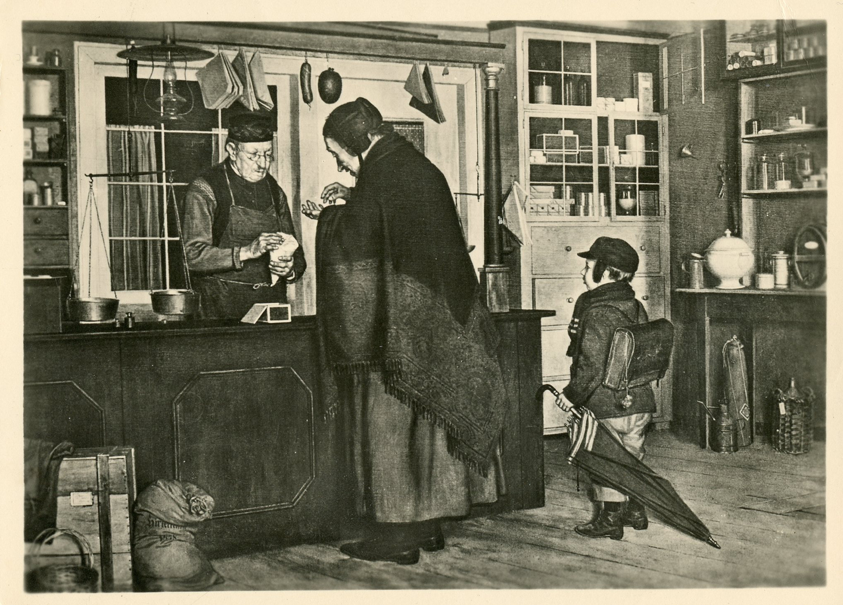 [Above: This was done by the artist Peter Philippi, from Trier, entitled 'Belm Krämer' (At the Grocer).]