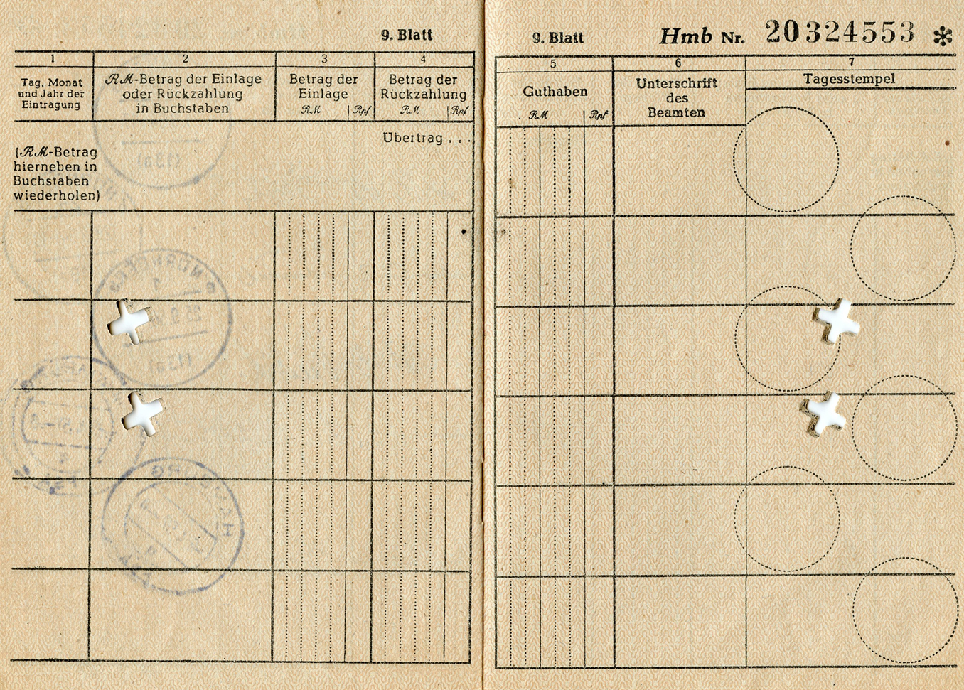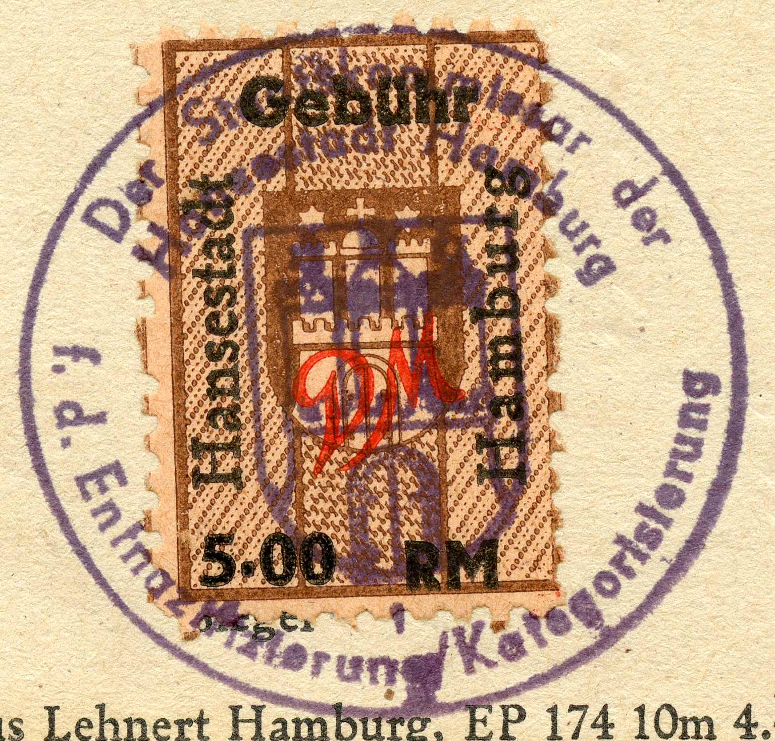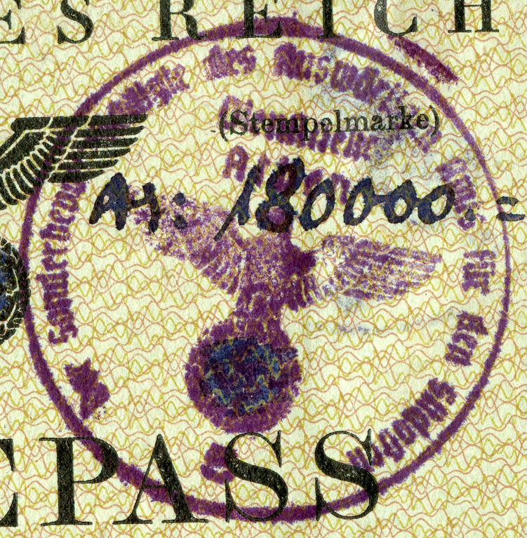 [Below: This shows another 'de-Nazified' ink stamp on the bottom right. In this case they've removed the eagle and swastika entirely.]