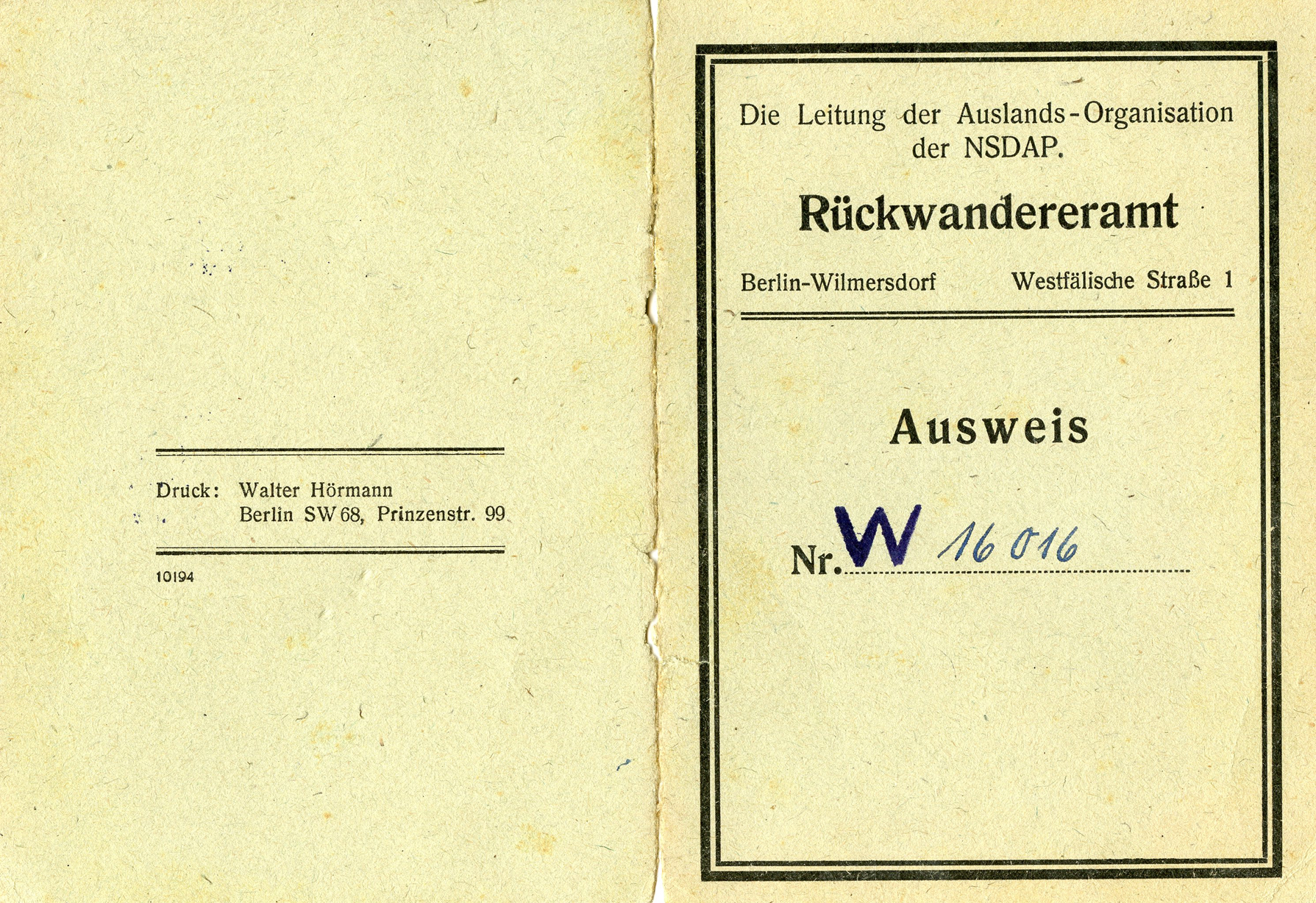 'Die Leitung der Auslands - Organisation der NSDAP. Rückwandereramt'