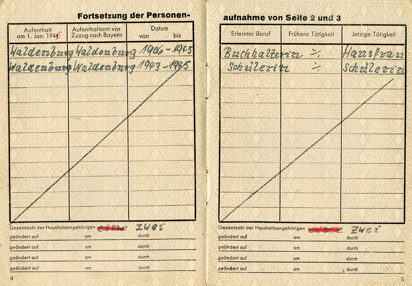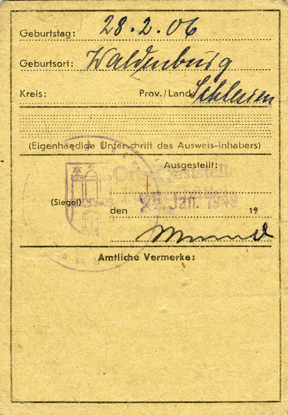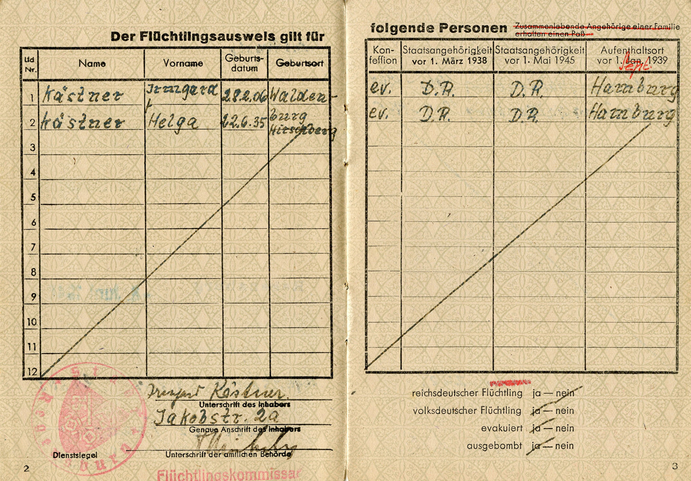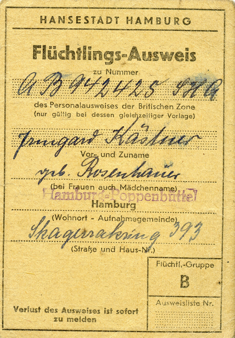 [Below: Irmgard's Hamburg 'Refugee ID' card of the same type.]
