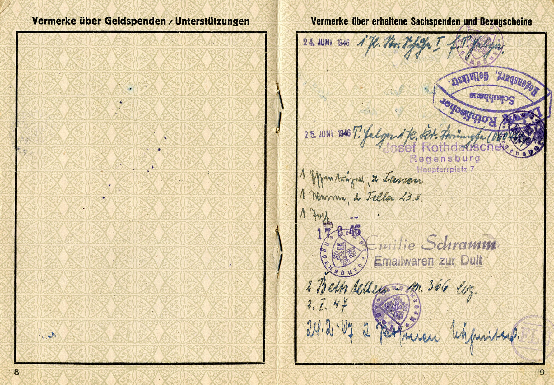 [Below: This is a 'Flüchtlings-Ausweis' (Refugee ID Card). Refugee? Hmm... Let's look inside.]
