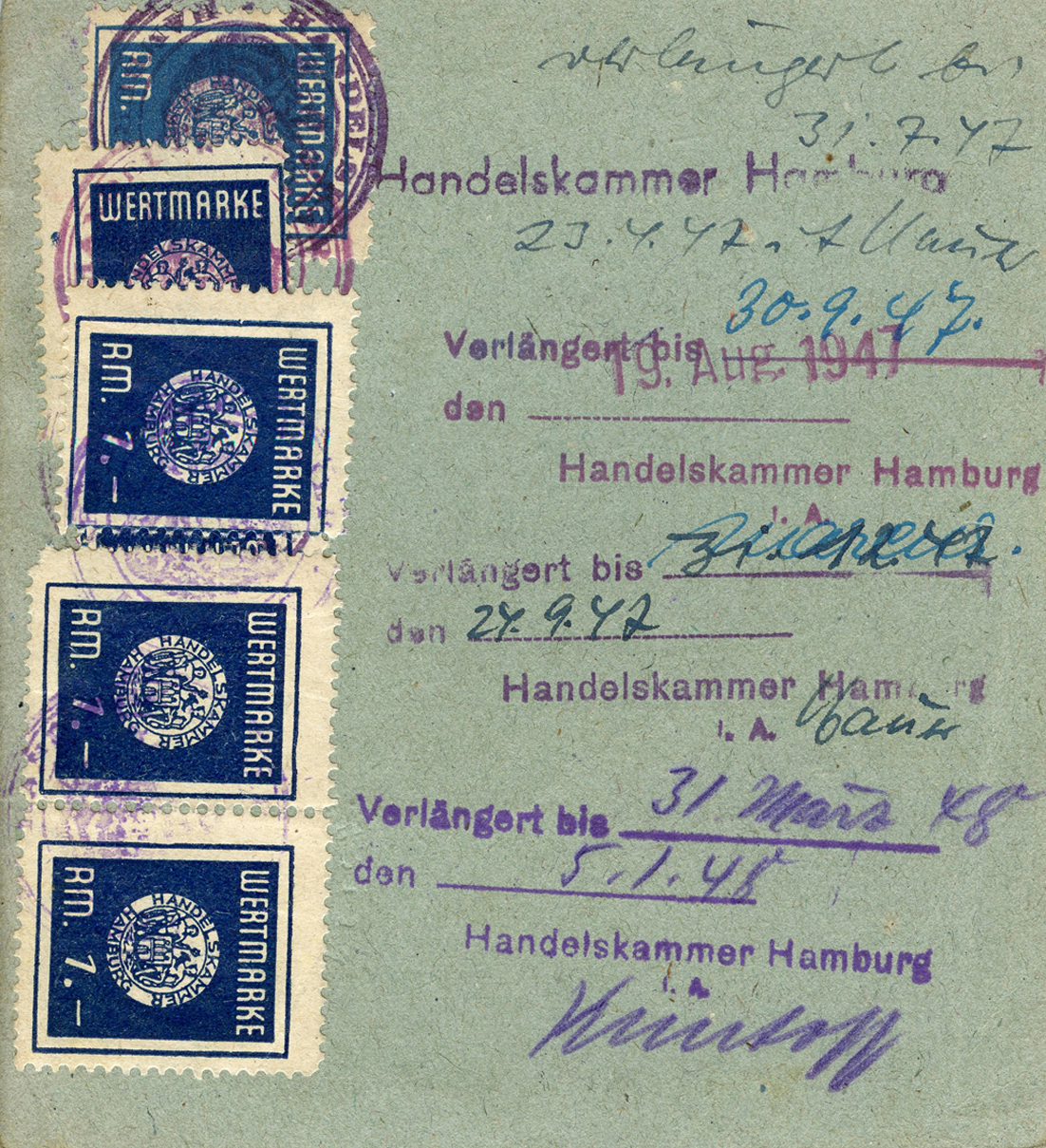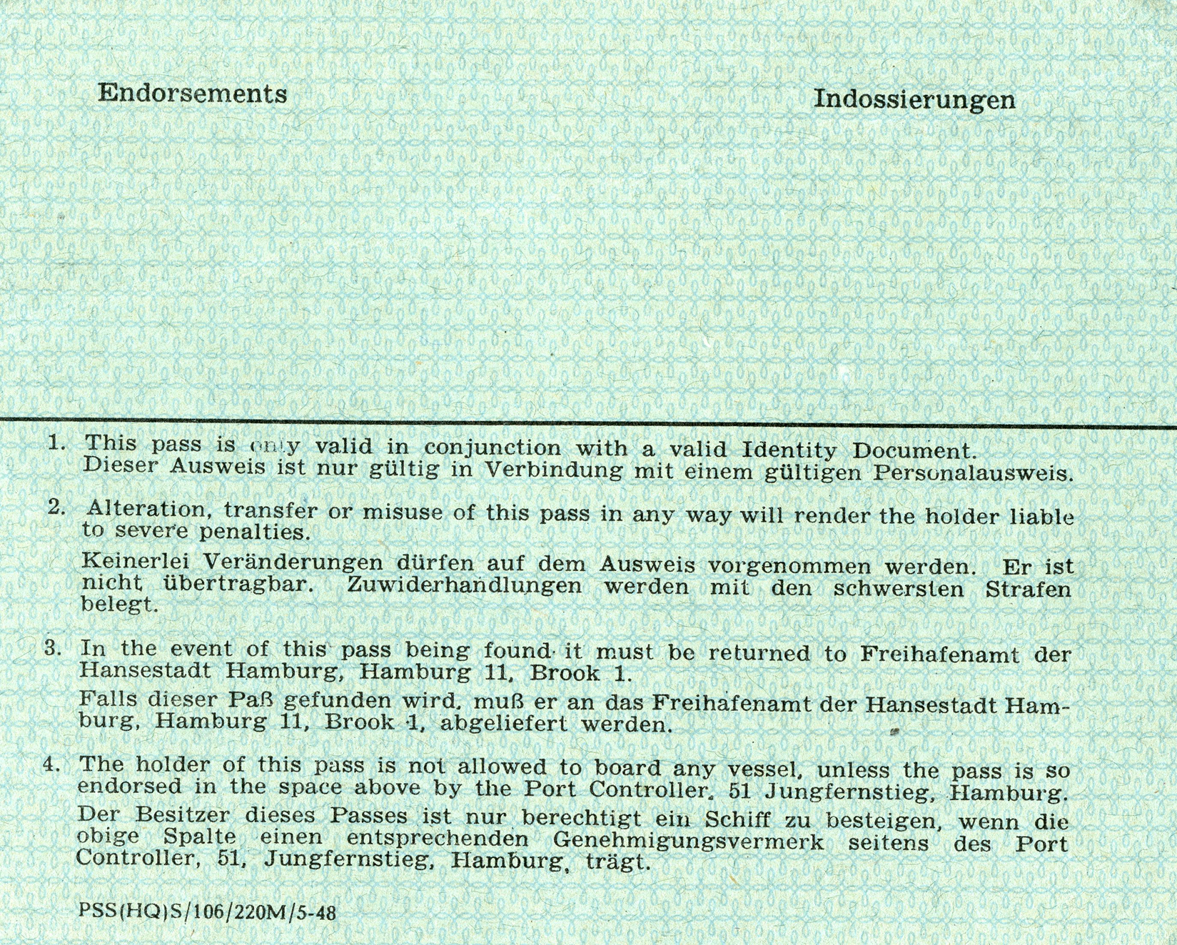[Below: This is a Dock Pass/Hamburg Port Permit.]