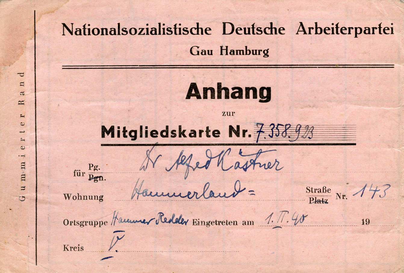 Meet Dr. Alfred Kästner, born on July 24, 1902 in Dresden. He was a newspaper editor and member of the NSDAP in the last years of the war. Kästner had blue-grey eyes and dark blond hair and favored the same mustache as Adolf Hitler, otherwise called the 'toothbrush mustache'. He was married to Irmgard and had a daughter named Helga. His work took him to a variety of countries, like Bulgaria, Hungary and Austria. He lived in Hamburg with his family, but worked in Athens, Greece, until the German withdrawal of the country in late 1944.