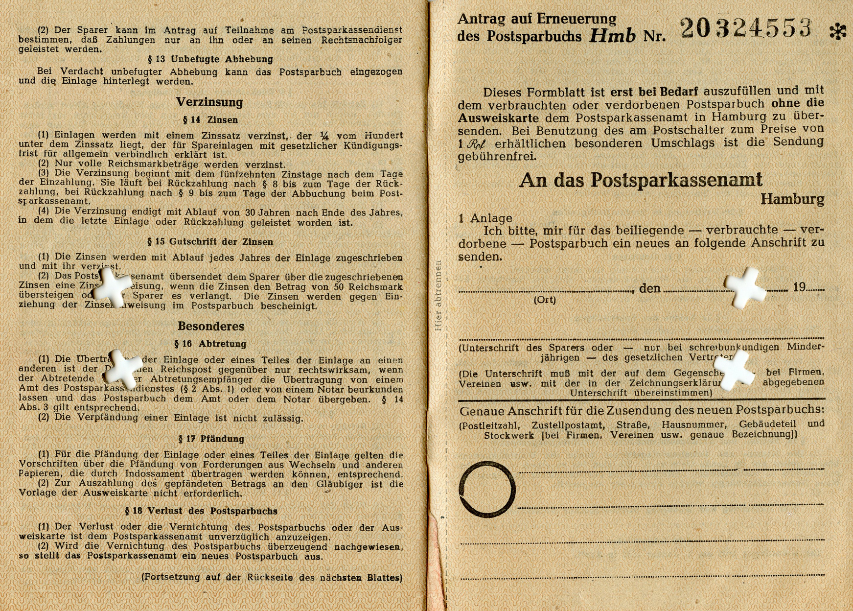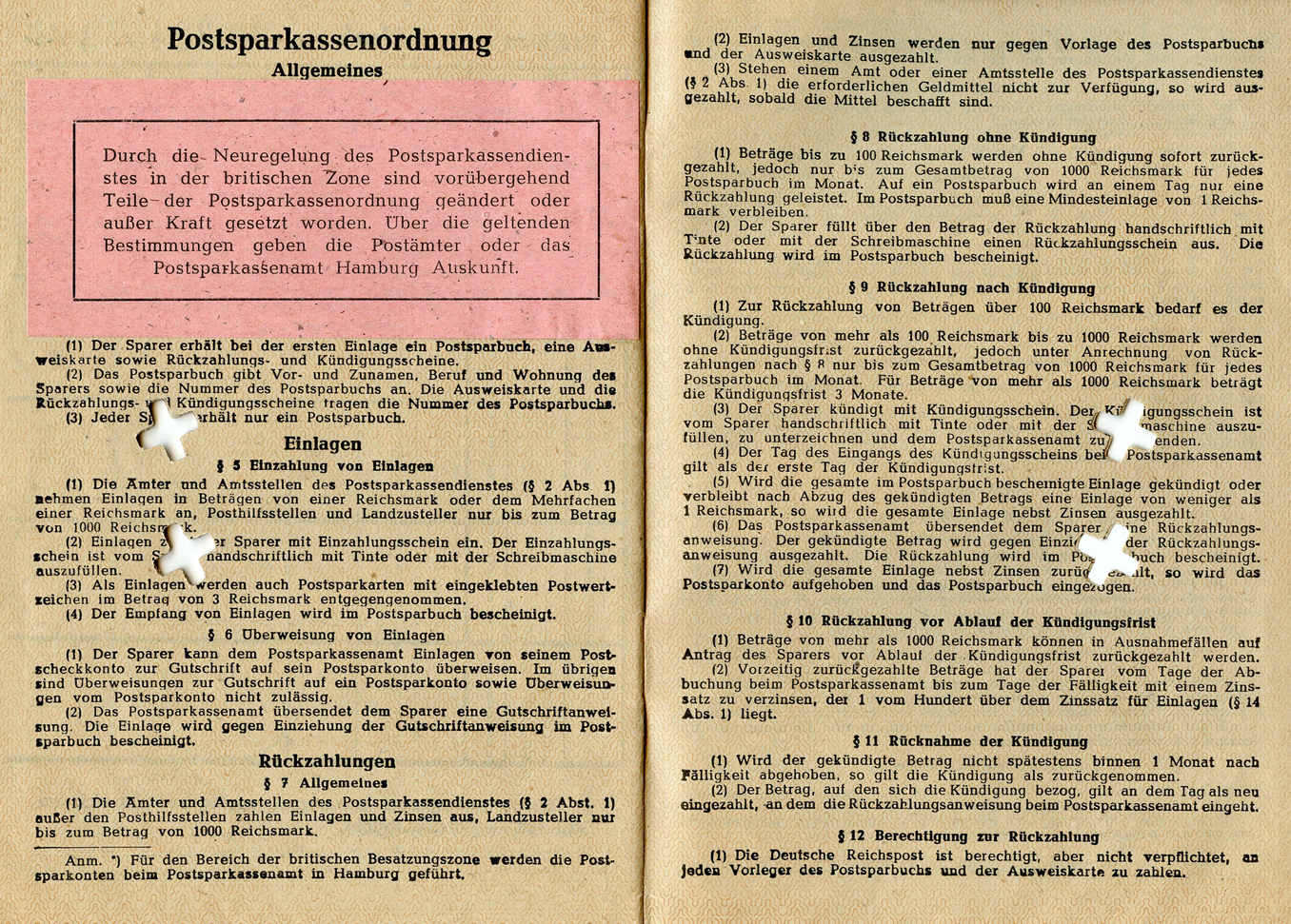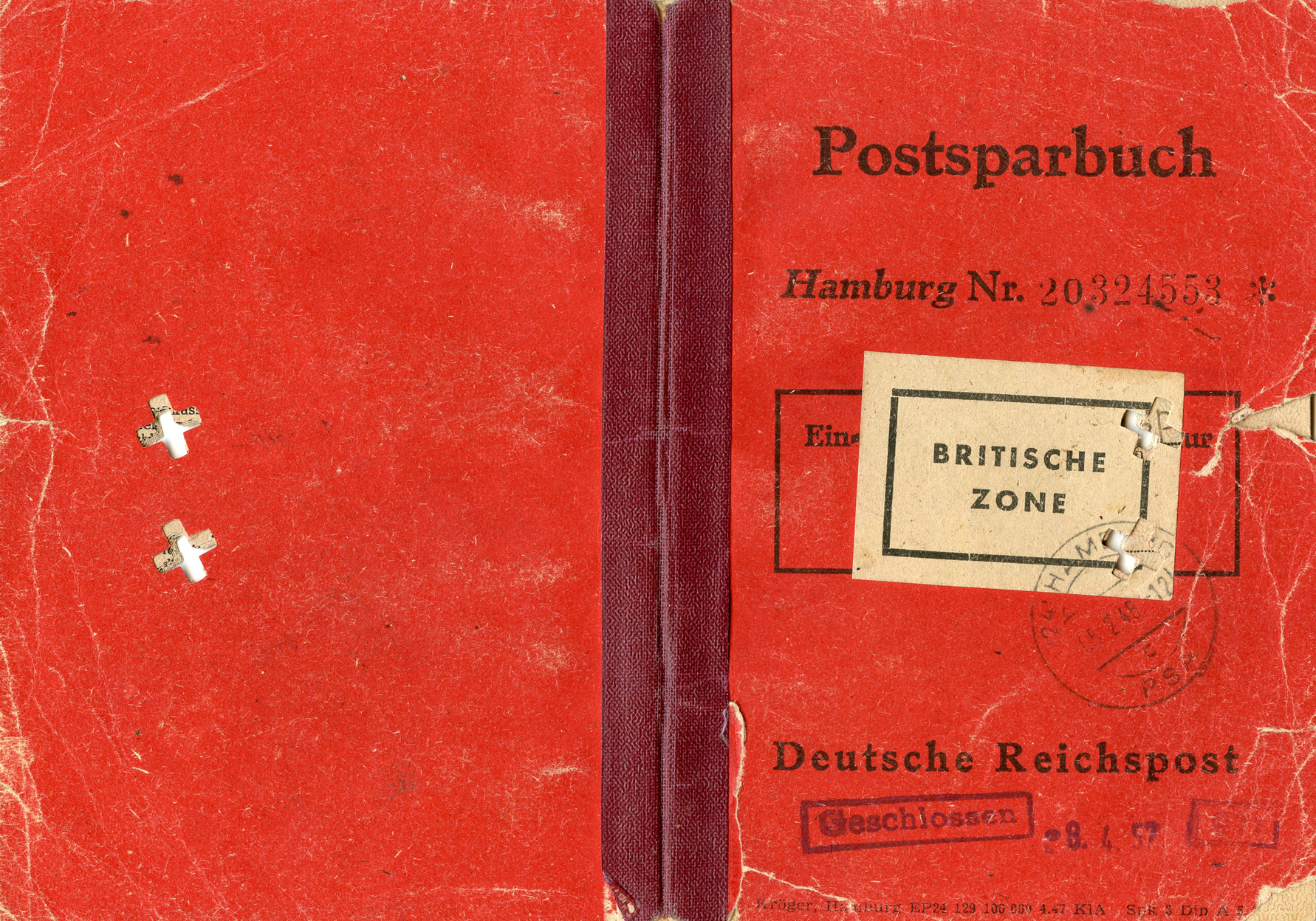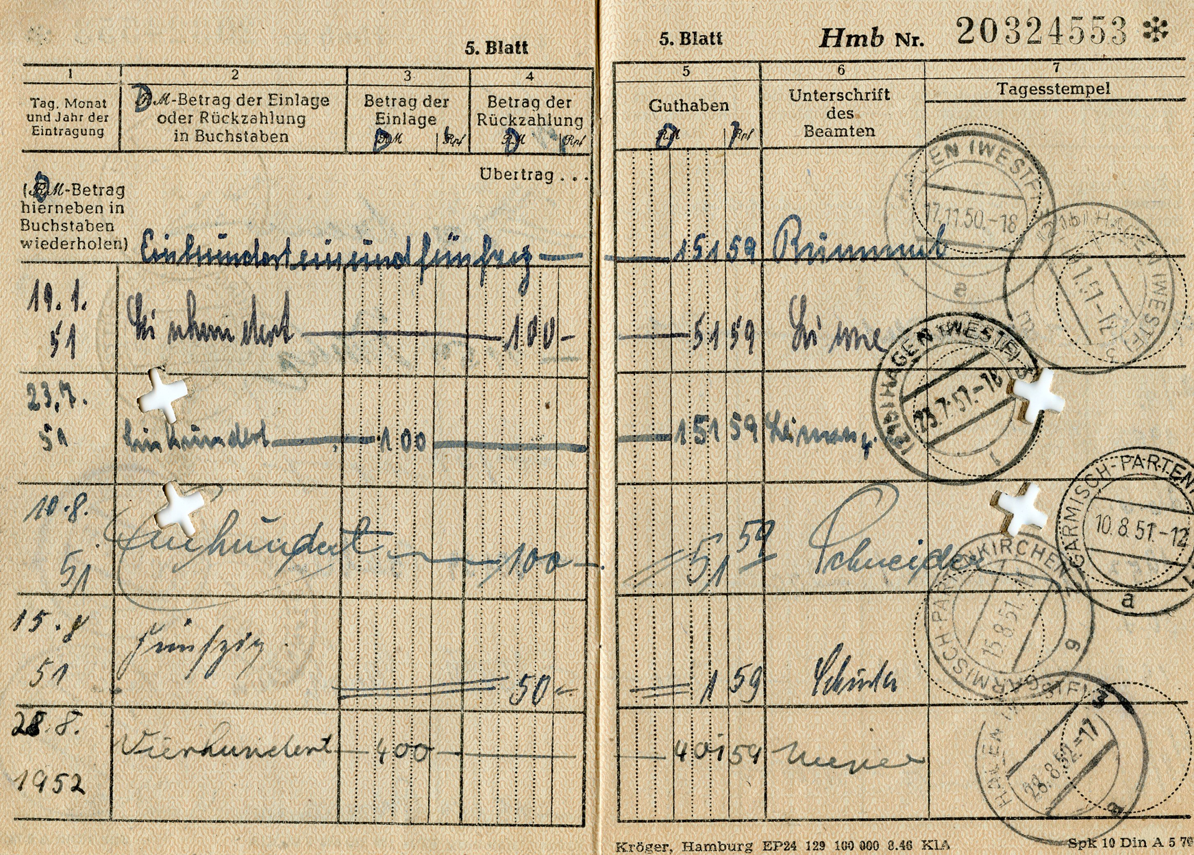 [Below: This is a Hamburg, British Zone, savings book from the Doctor's wife, Irmgard, from 1948. The account was closed on April 8, 1957.]