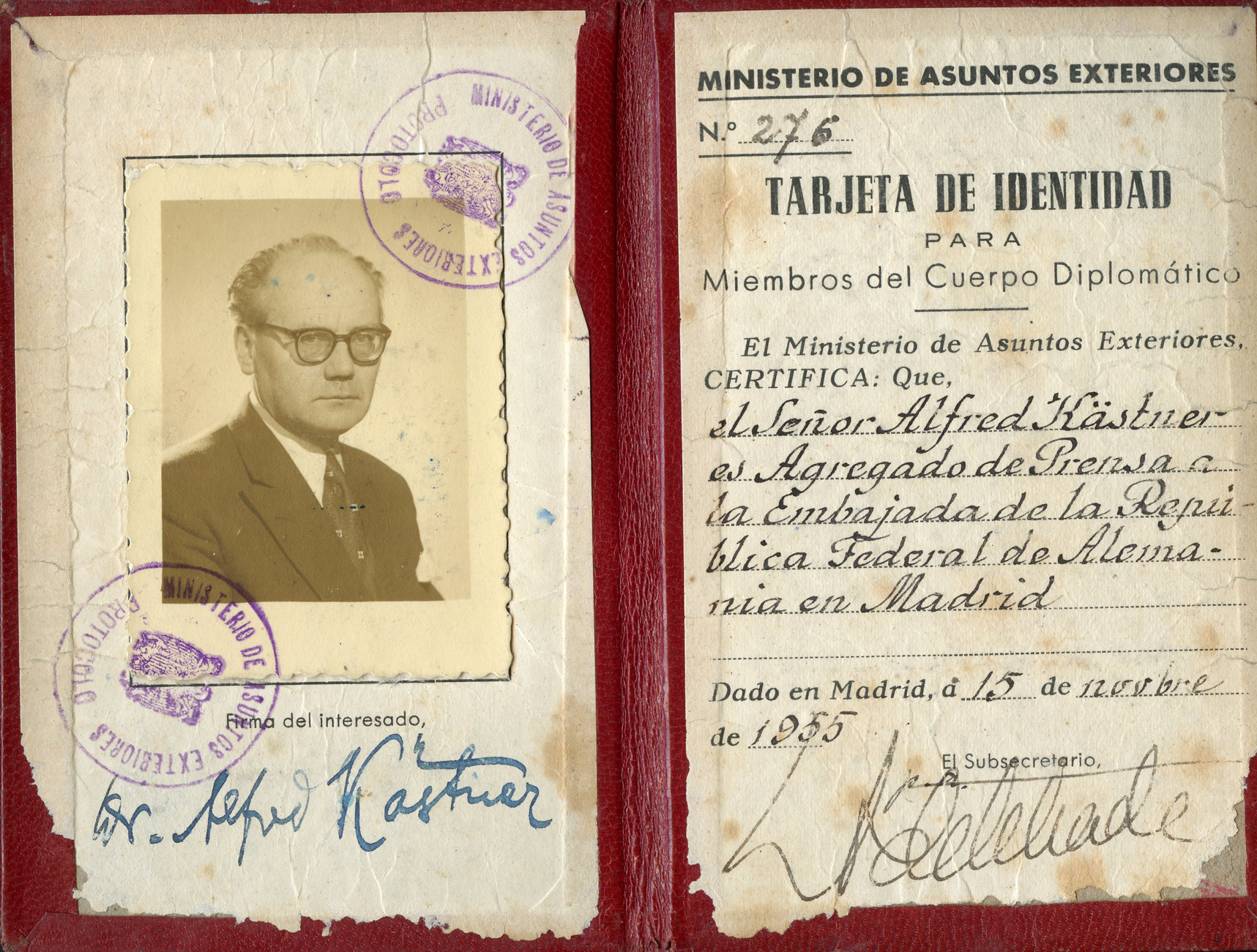 [Below: 1955 identification booklet from the Spanish Embassy. The Doctor was a member of the press within the embassy.]