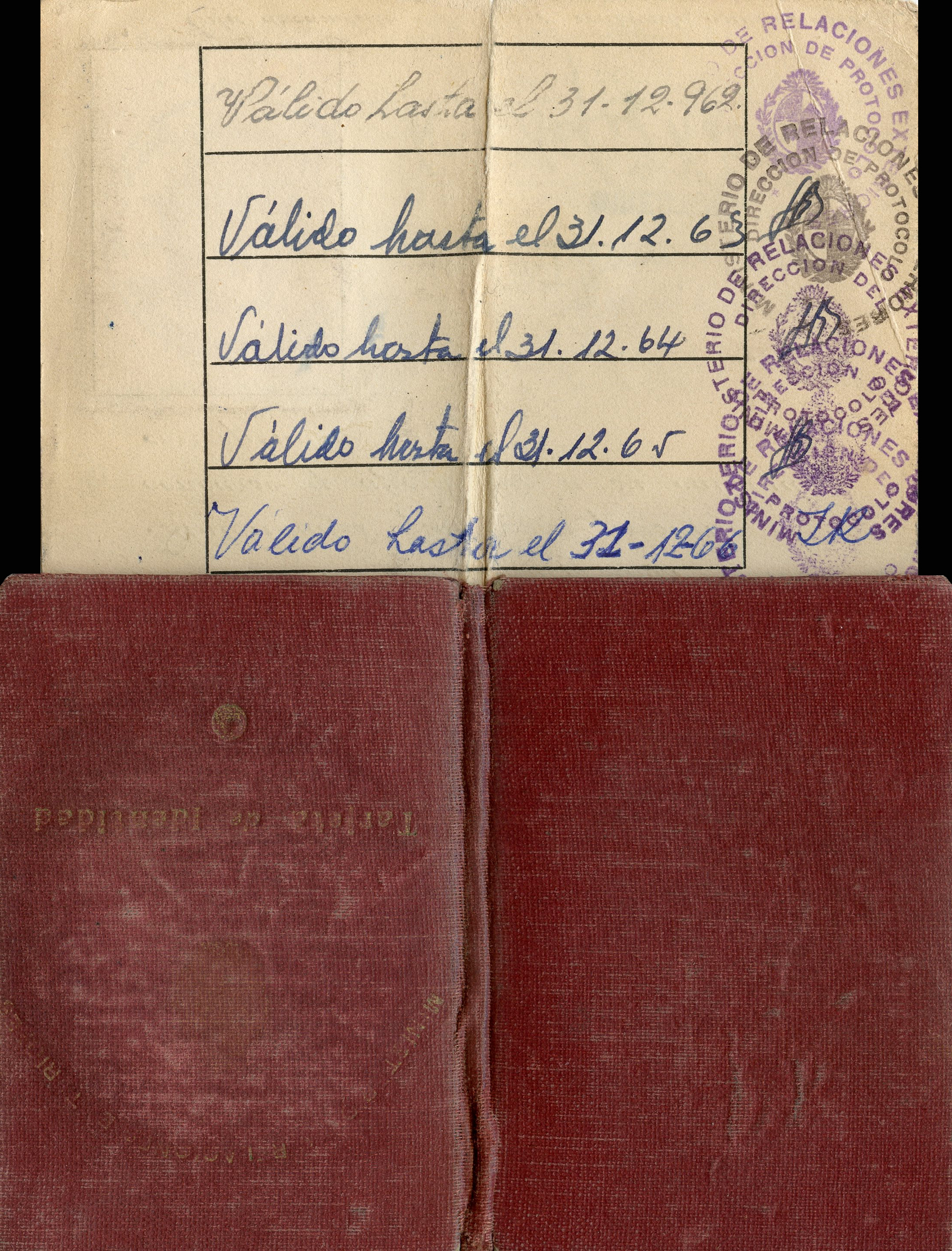 [Below: 1967 identification booklet from, again, the Uruguay Embassy. This shows the ID book and folded-down paper from the inside.]