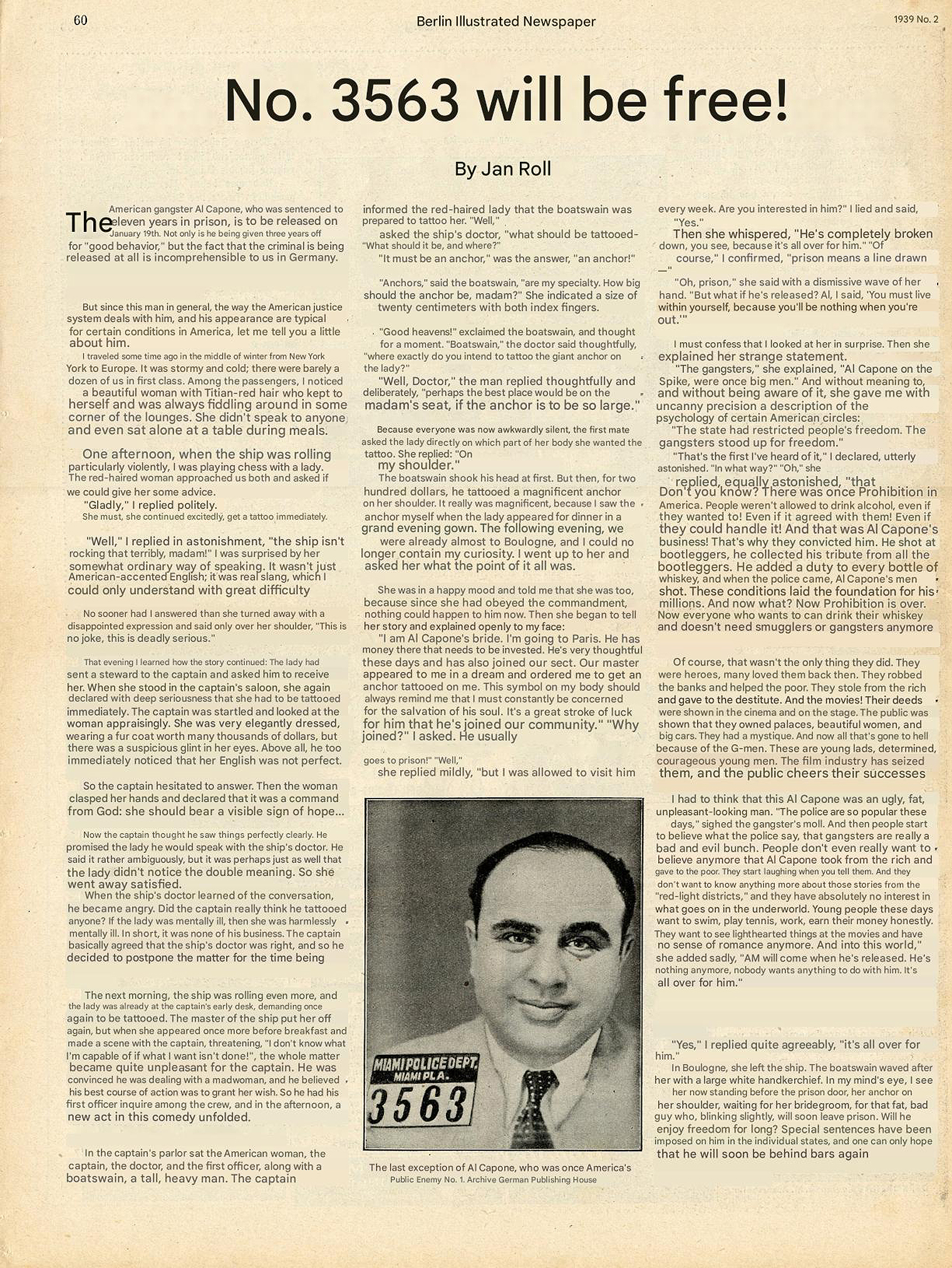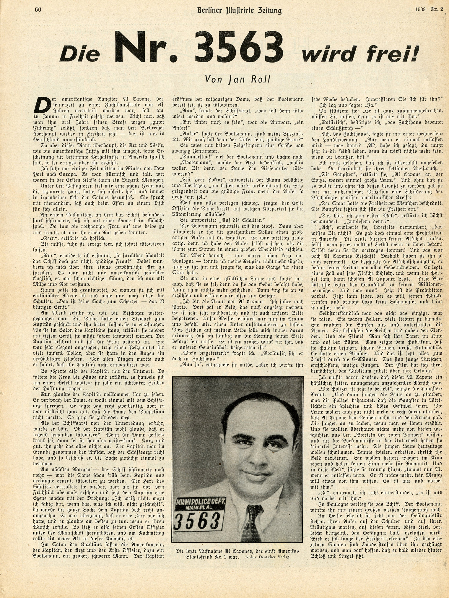 [Above: A German article regarding Al Capone being let out of prison.]