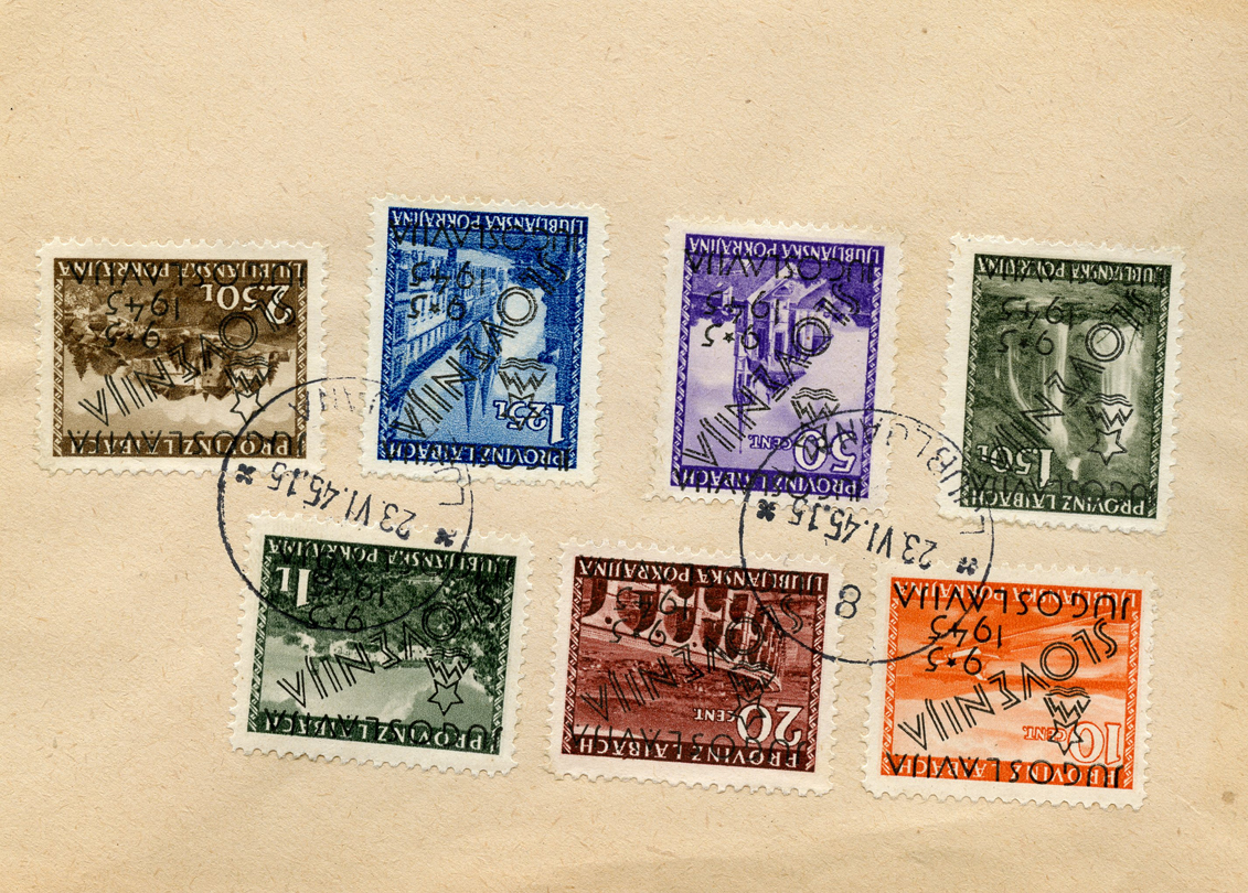 [Below: Soviet occupation of Laibach (Slovenia) after being previously liberated by Germany and given its independence. This country would be forced back into the artificial and unstable country of Yugoslavia, an ethic and religious cauldron of unrest. Postmarked June 23, 1945.]