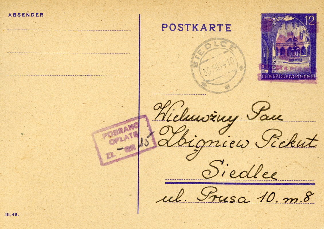 [Below: Communist occupation of the General Government (Poland). Postmarked on August 30, 1944.]