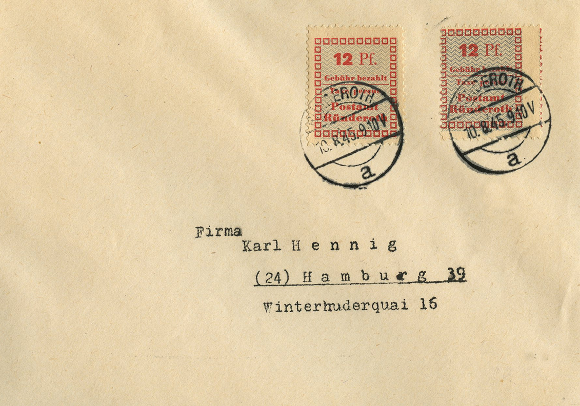 [Below: Harsh and plain postage was the norm in Germany for years after the war. This rather rare stamp was used in the months following the victory of darkness over the bastion of light, Germany.]