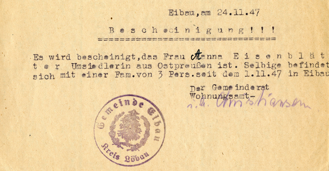 [Below: This is a 'resettler from the east' certificate issued on November 24, 1947. Click to see more.]