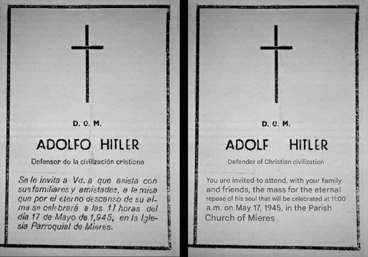 'Adolf Hitler, son of the Catholic Church, died while defending Christianity.