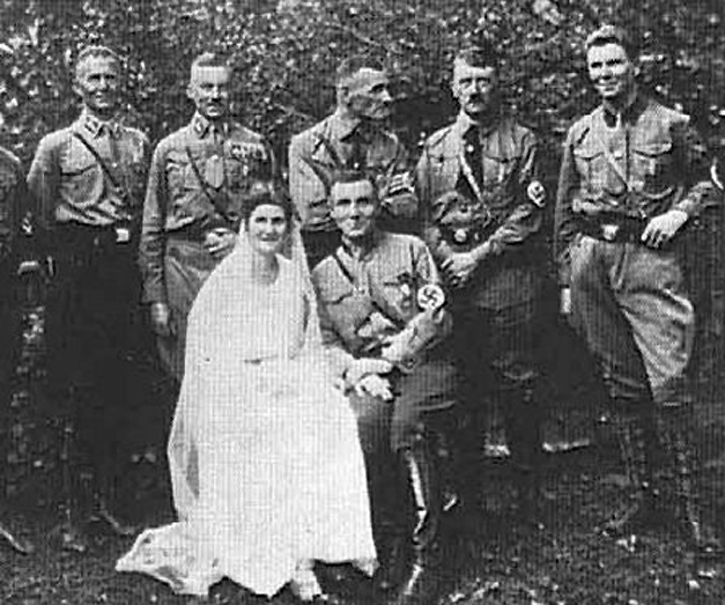 This picture shows her in the glow of Adolf Hitler, whose back is facing the camera.]
