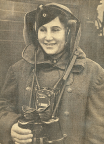 [Above: A woman in a shooting competition (holding a P08 Luger pistol).]