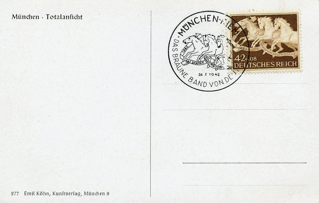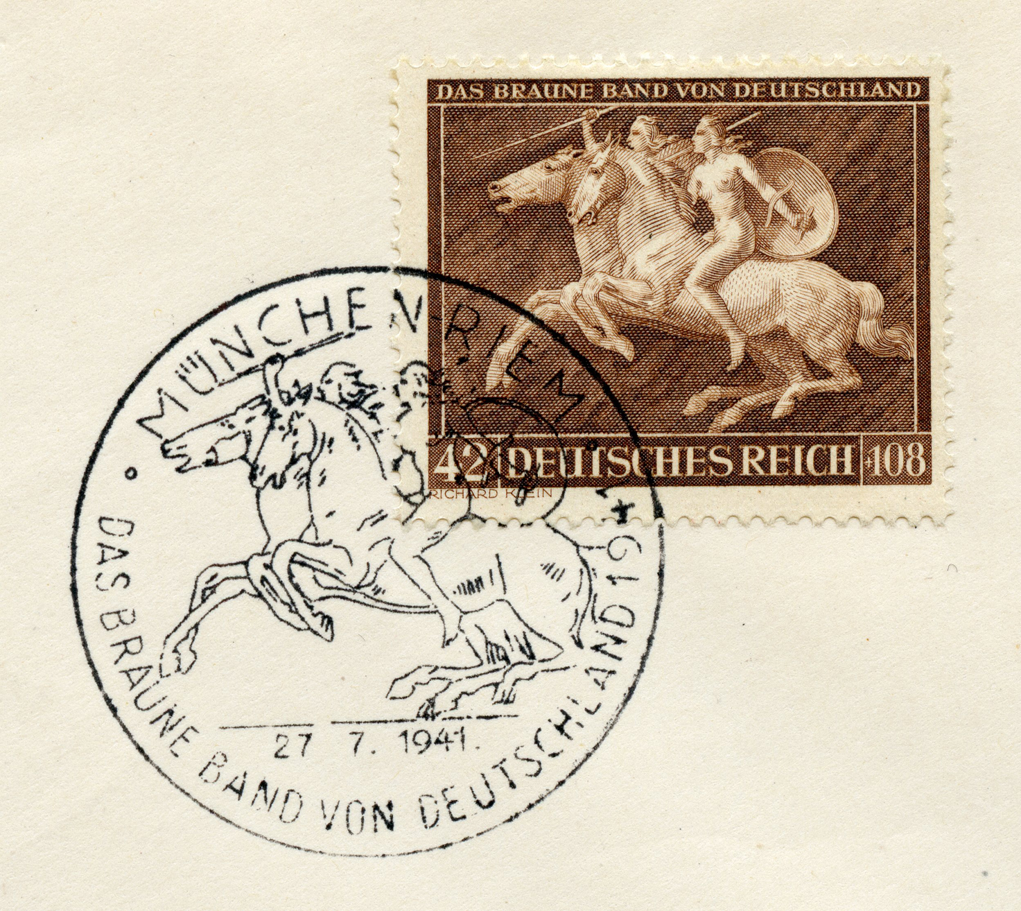 [Above: 1936 Munich summer Olympics official festival card. It says: 'Das braune Band von Deutschland' (The Brown Ribbon of Germany).]