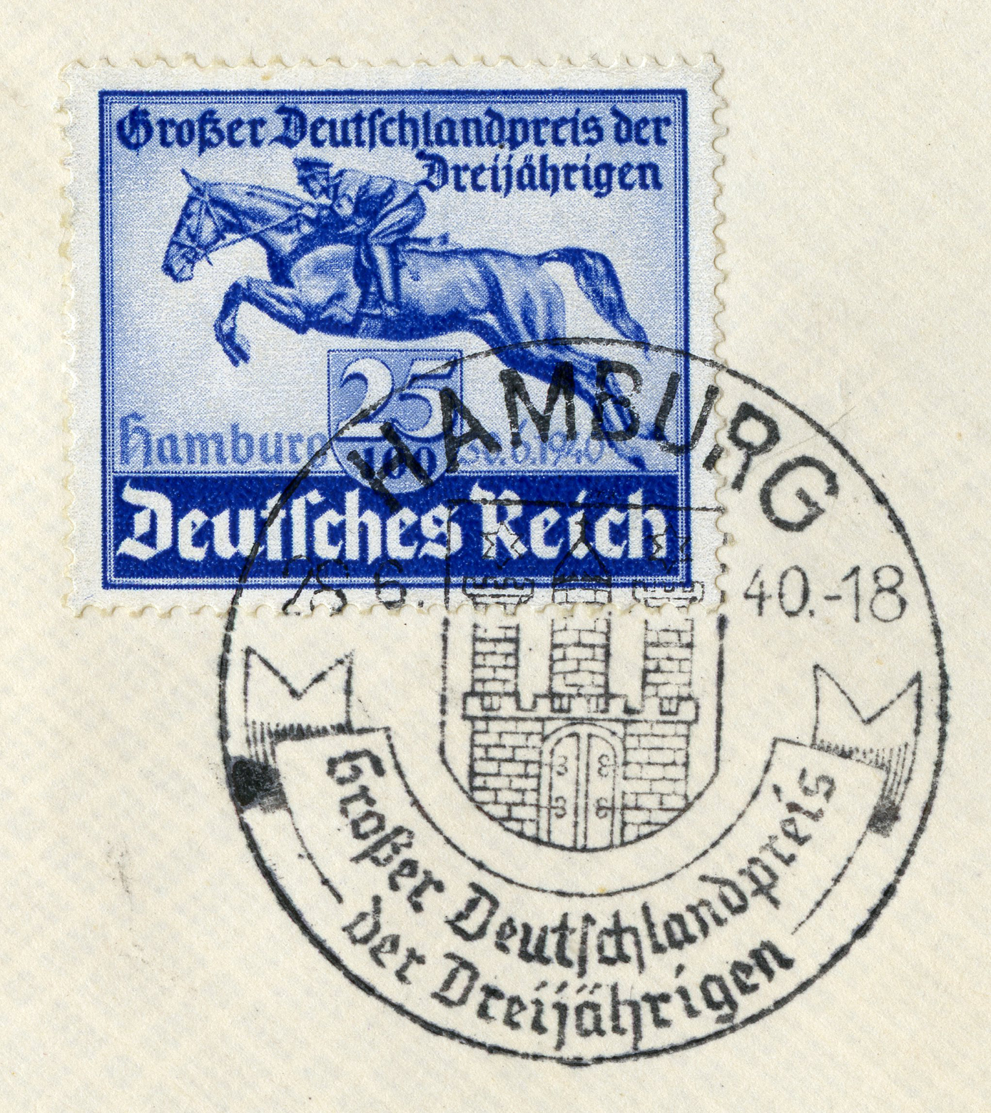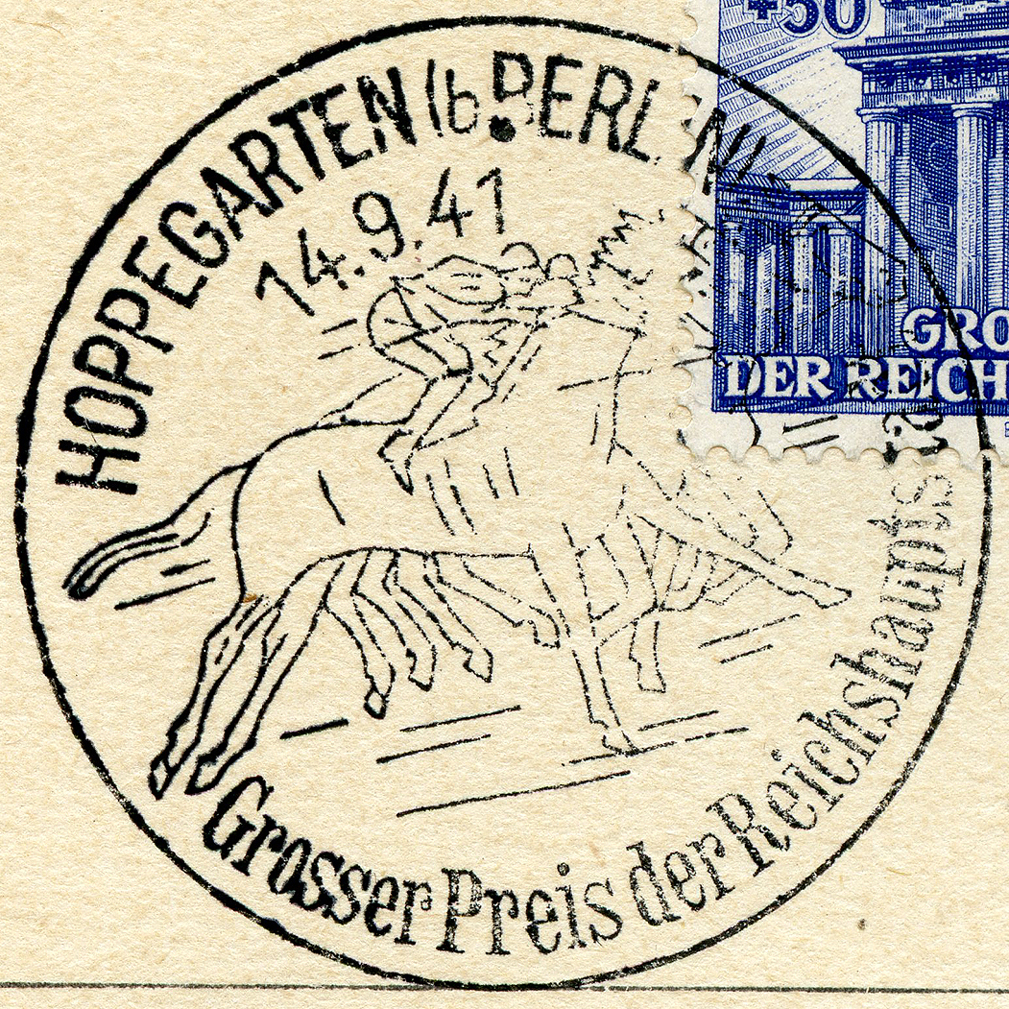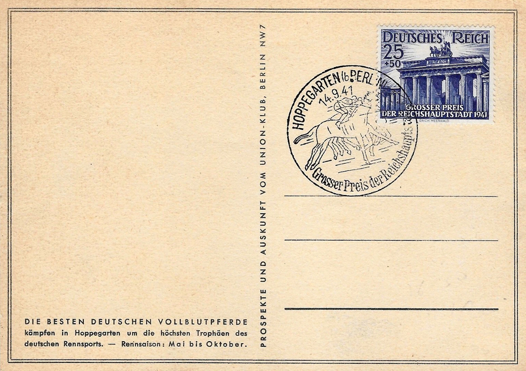 [Above: A fairly rare postcard that took place in 'Hoppegarten (Berlin)' for the 'Grosser Preis der Reichshauptstadt' (Grand Prix of the Reich Capital) on September 14, 1941'.]