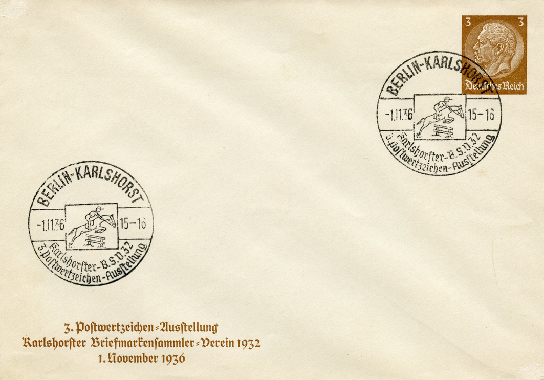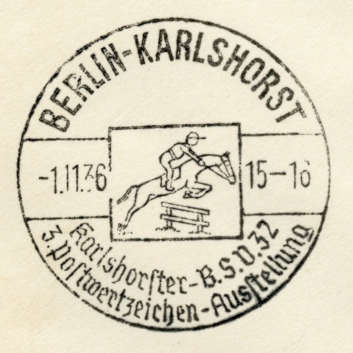 [Below: This envelope's cancel, from September 13, 1935, advertises 'Celler Hengstparade' (Celler Stallion Parade)Celle is a town and capital of the district of Celle in Lower Saxony, in north-central Germany. The horse parade is still taking place today.]