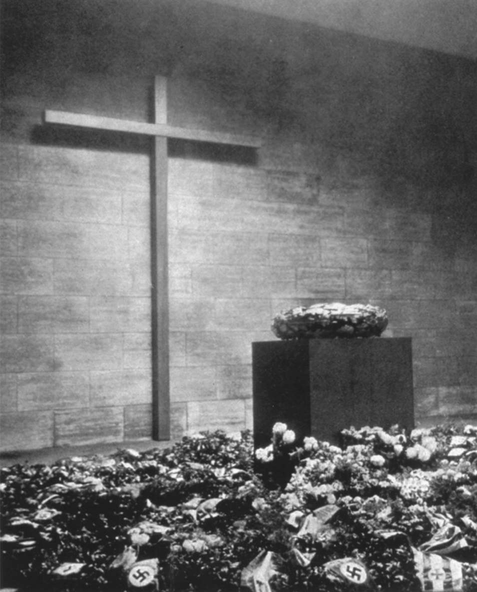 [Below: The 'Neue Wache' was built in 1816 under the order of King Frederick William III of Prussia. It was widely used as a monument to the fallen. The cross was added by the NSDAP.]