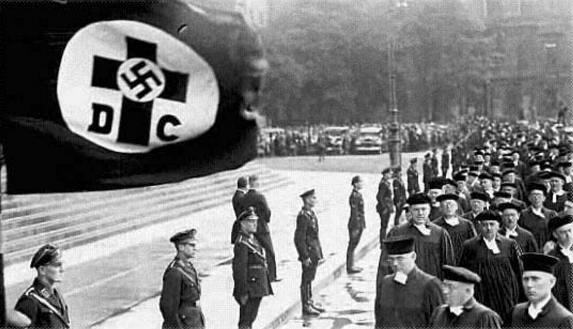 [Below: Reich Bishop Ludwig Müller with Brown Shirts in Wittenberg.]