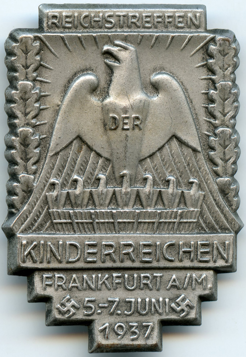 [Below: As above this tinnie says 'Reichstreffen' (Reich's meeting), except it has a 1937 date and the location, plus the words 'Kinderreichen' (having children).]