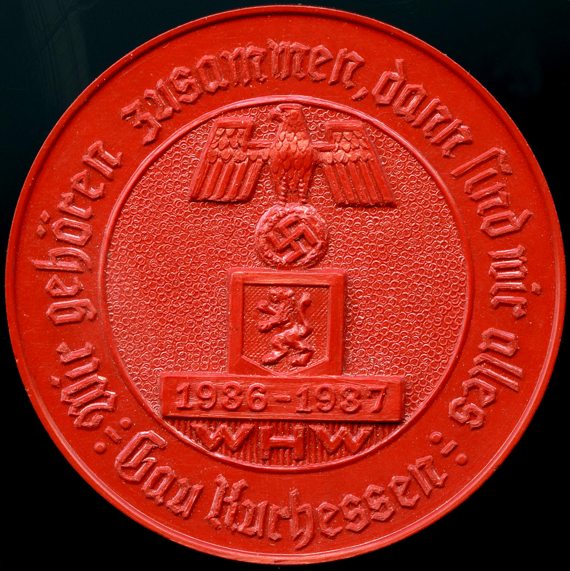 [Below: Now this is cool! This Winterhilfwerk 'tinnie' is made of some type of plastic. It says 'Wir gehören zusammen, dann sind wir alles' (We belong together, then we are everything).]