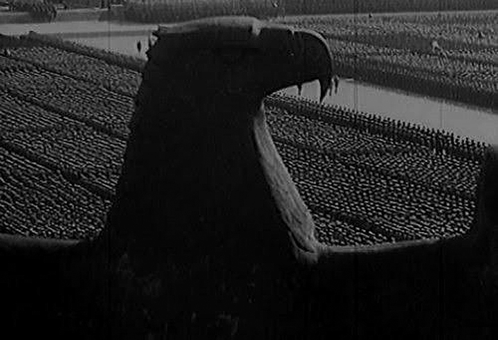 [Below: A page from a newspaper. This eagle is from the master sculpture Josef Thorak.]