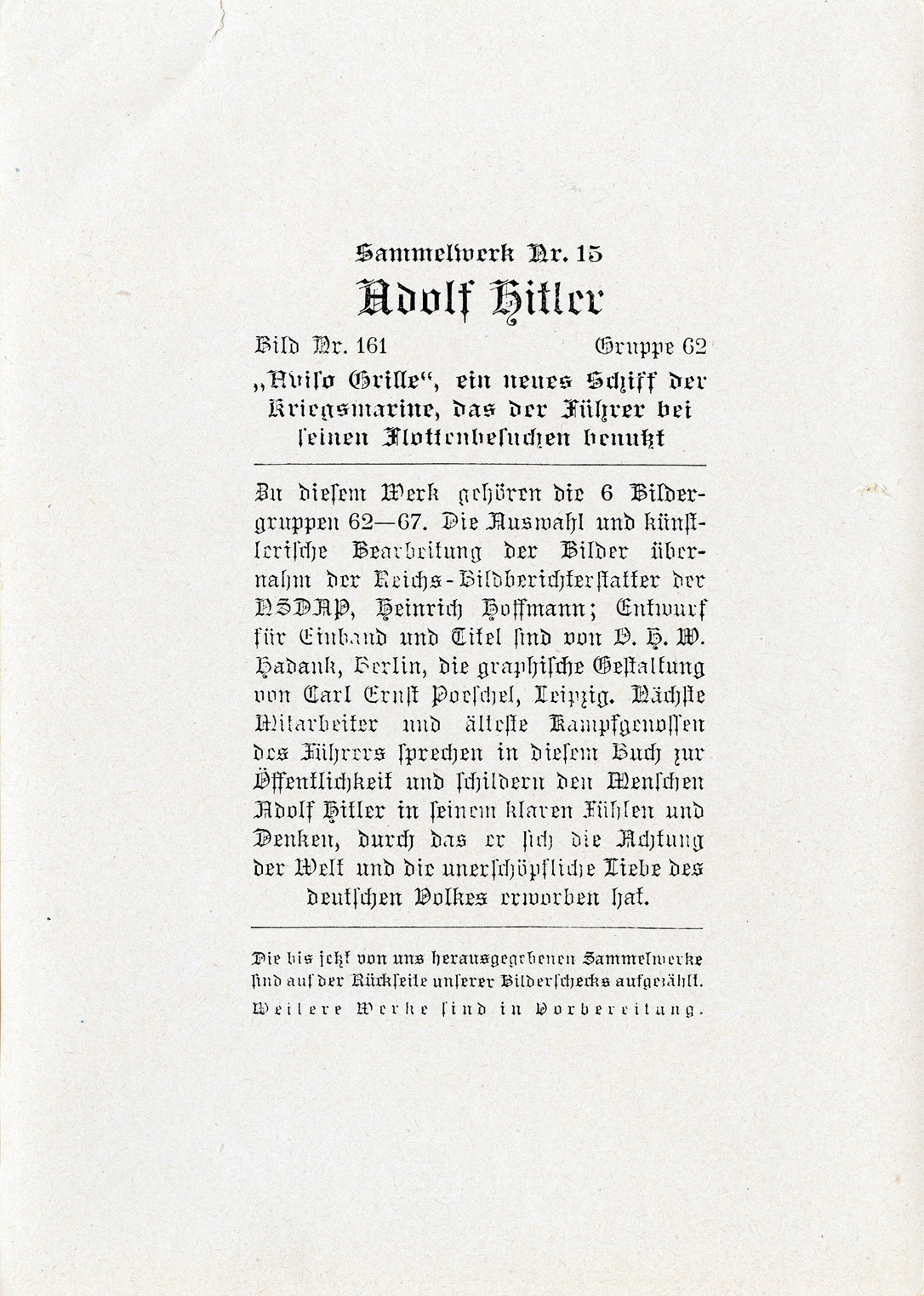 [Below: The 'Aviso Grille' which Adolf Hitler used during his Kriegsmarine fleet visits. This is from a cigarette card album.]