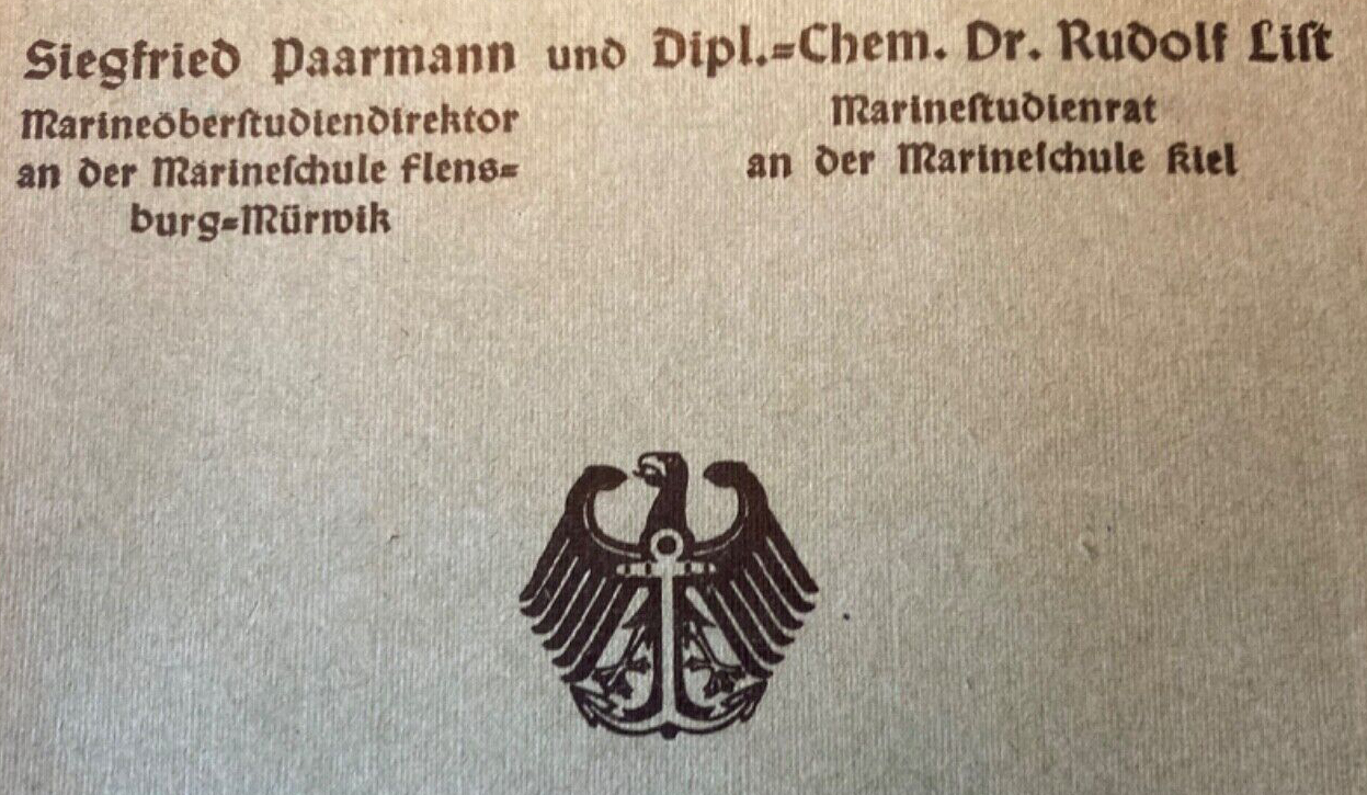 [Below: An inner page of a book from 1941 showing a Kriegsmarine eagle.]