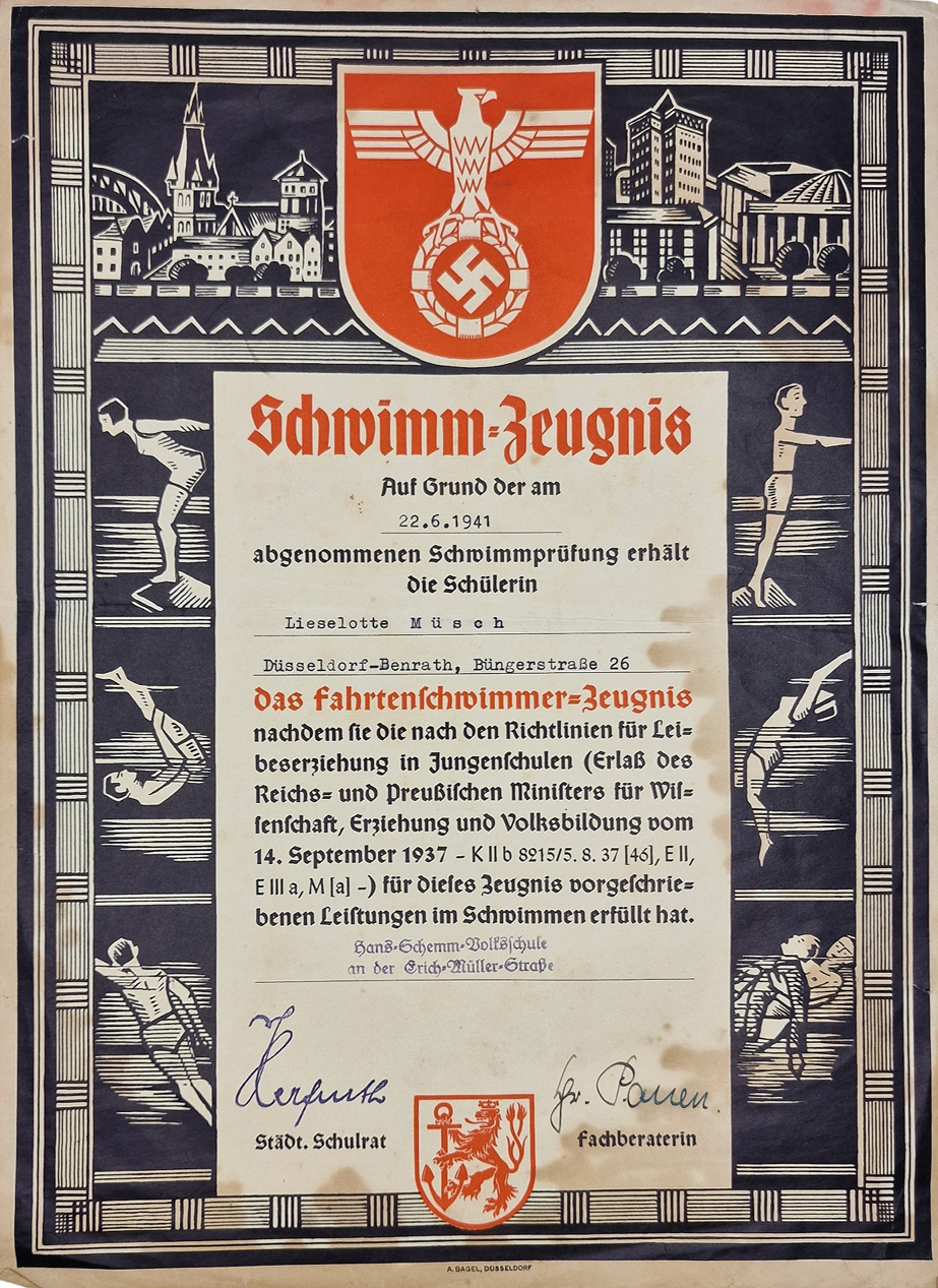 [Below: An award certificate for an 'Iron and Metal' competition group of a vocational competition of German youth, 1937.]