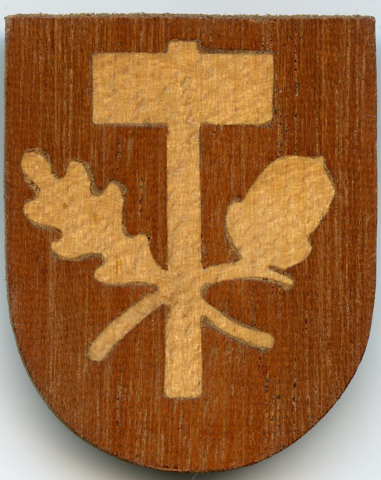 [Below: Here is an advertising stamp from 1937 with the hammer and oakleaves motif.]